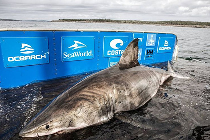 В пятницу, 2 октября, исследователи из некоммерческой организации OCEARCH поймали большую белую акулу длиной около пяти метров. Предположительно, возраст хищницы — более 50 лет.