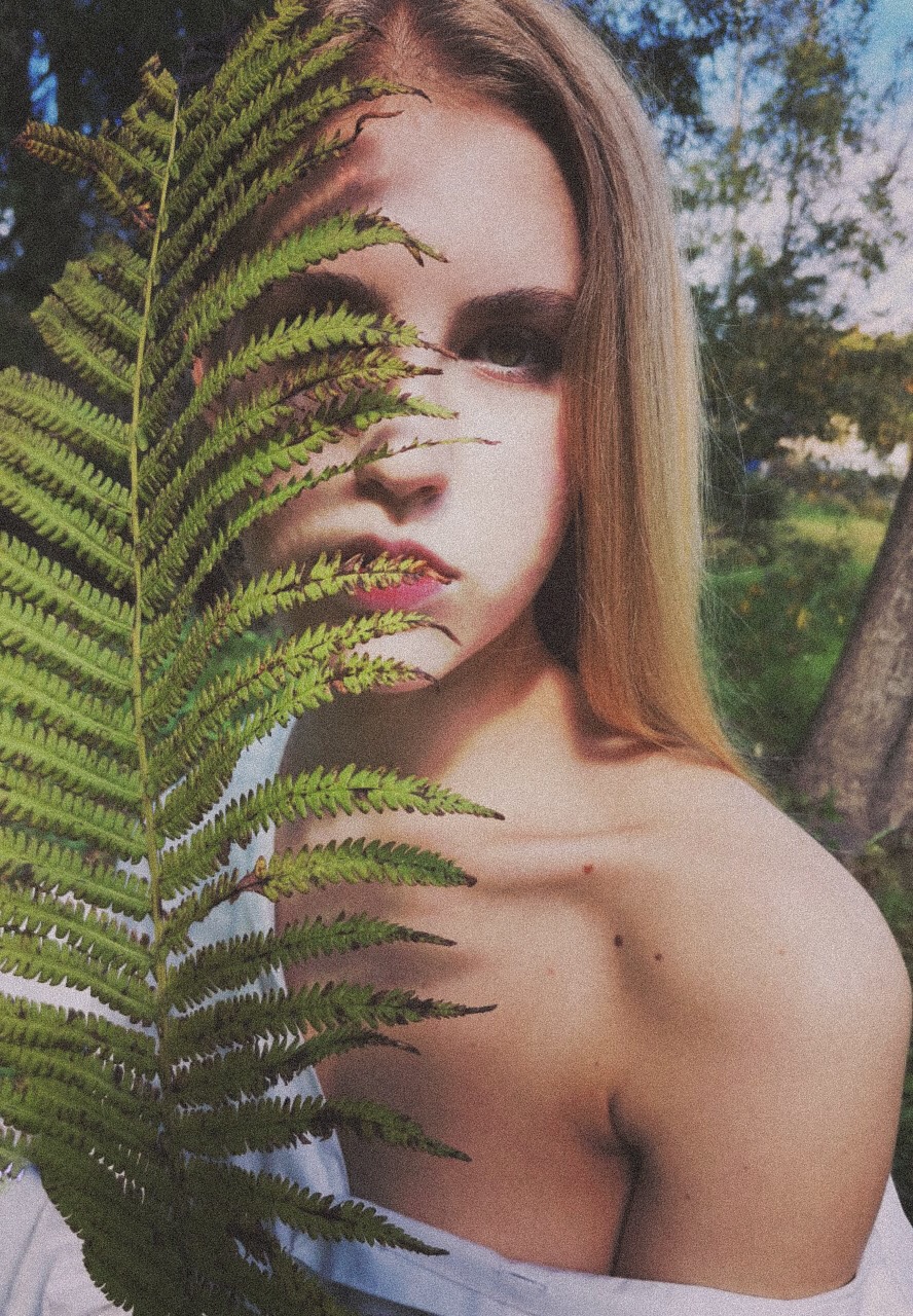 Свой «дальневосточный портрет с папоротником» прислала нам Александра. Участница работает младшим медицинским персоналом, влюблена в кондитерское искусство и пение. Хочет найти себя, много путешествовать и всё любить. Считает, что участие в конкурсе – это что-то новое и интересное.
