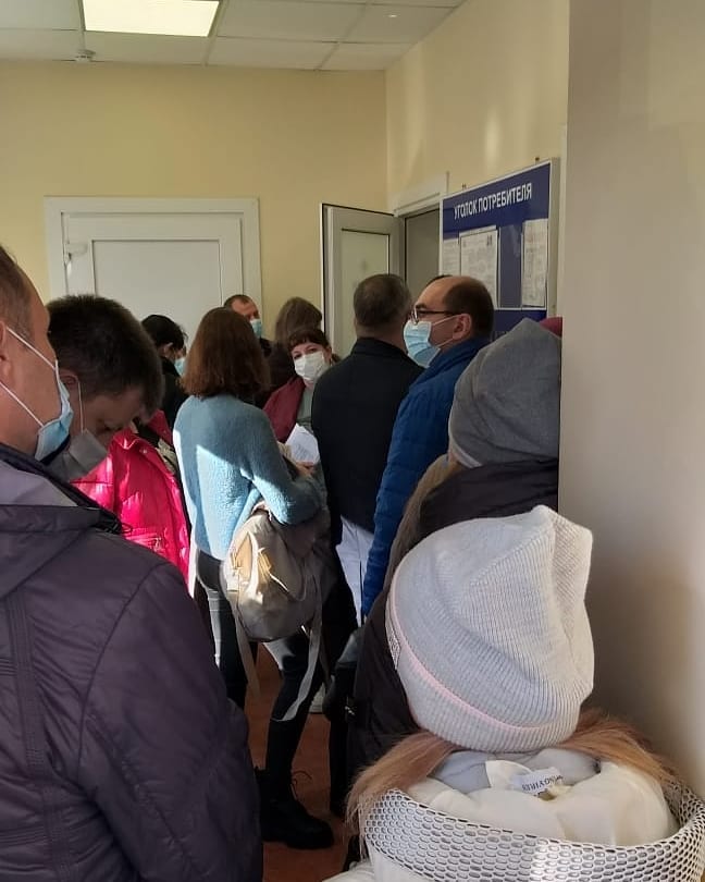 Очевидцы рассказывают, что в кабинет к врачу-инфекционисту стоит огромная очередь, которая начинается еще с улицы. Причём стоят в одну очередь и заболевшие и те, кому просто нужно закрыть больничный.