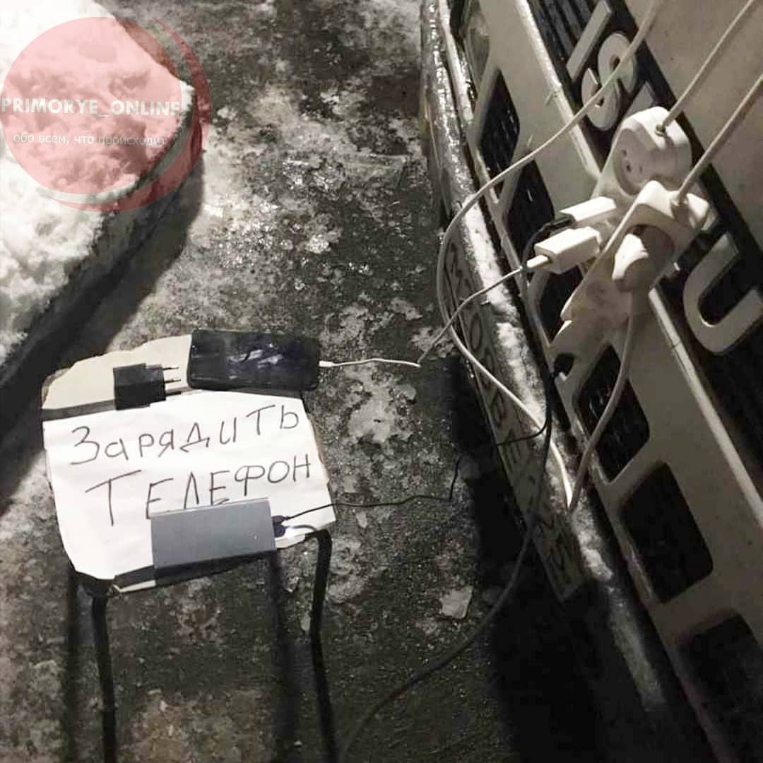 Во Владивостоке в районе улицы Полярной молодой человек предоставил свой автомобиль с генератором для зарядки электронных девайсов, сообщает РИА VladNews со ссылкой на primorye_online.