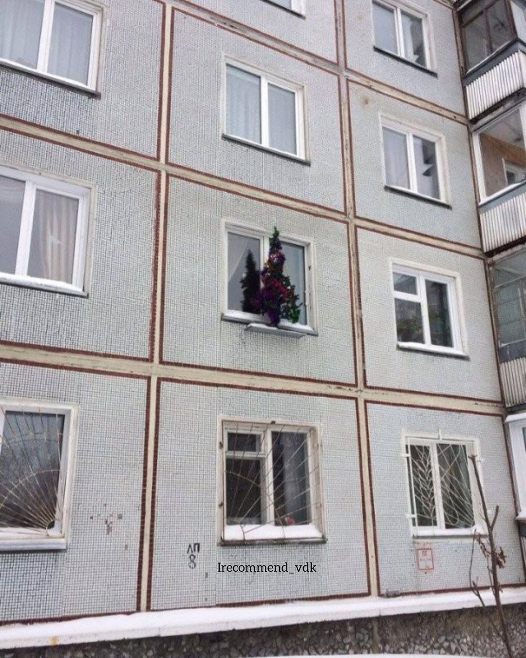 В популярном приморском паблике обсуждают фотографию, на которой изображена наряженная новогодняя елка на подоконнике, все бы ничего, но украшение стоит на внешней стороне окна, то есть на улице, сообщает РИА VladNews со ссылкой на irecommend_vdk.