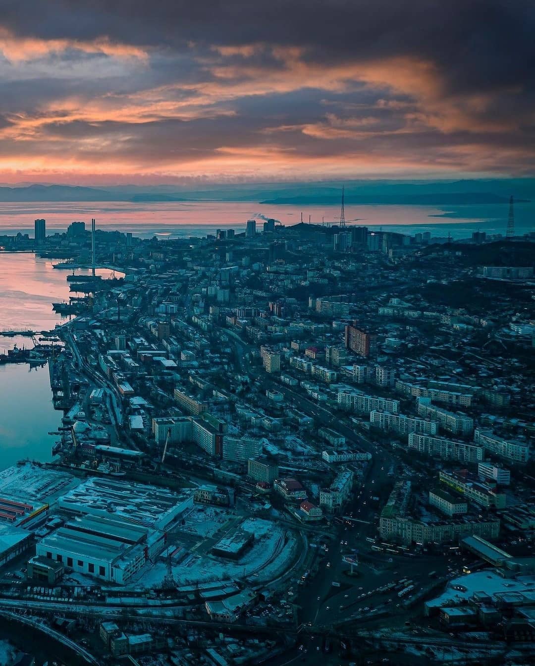 В популярном приморском паблике появились фотографии зимнего мрачного Владивостока, а точнее вида на бухту Золотой Рог сверху, сообщает РИА VladNews со ссылкой на nn_vladivostok.