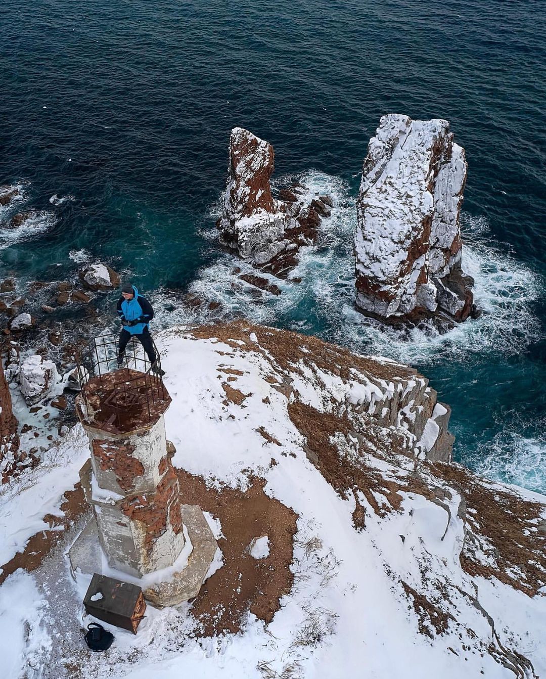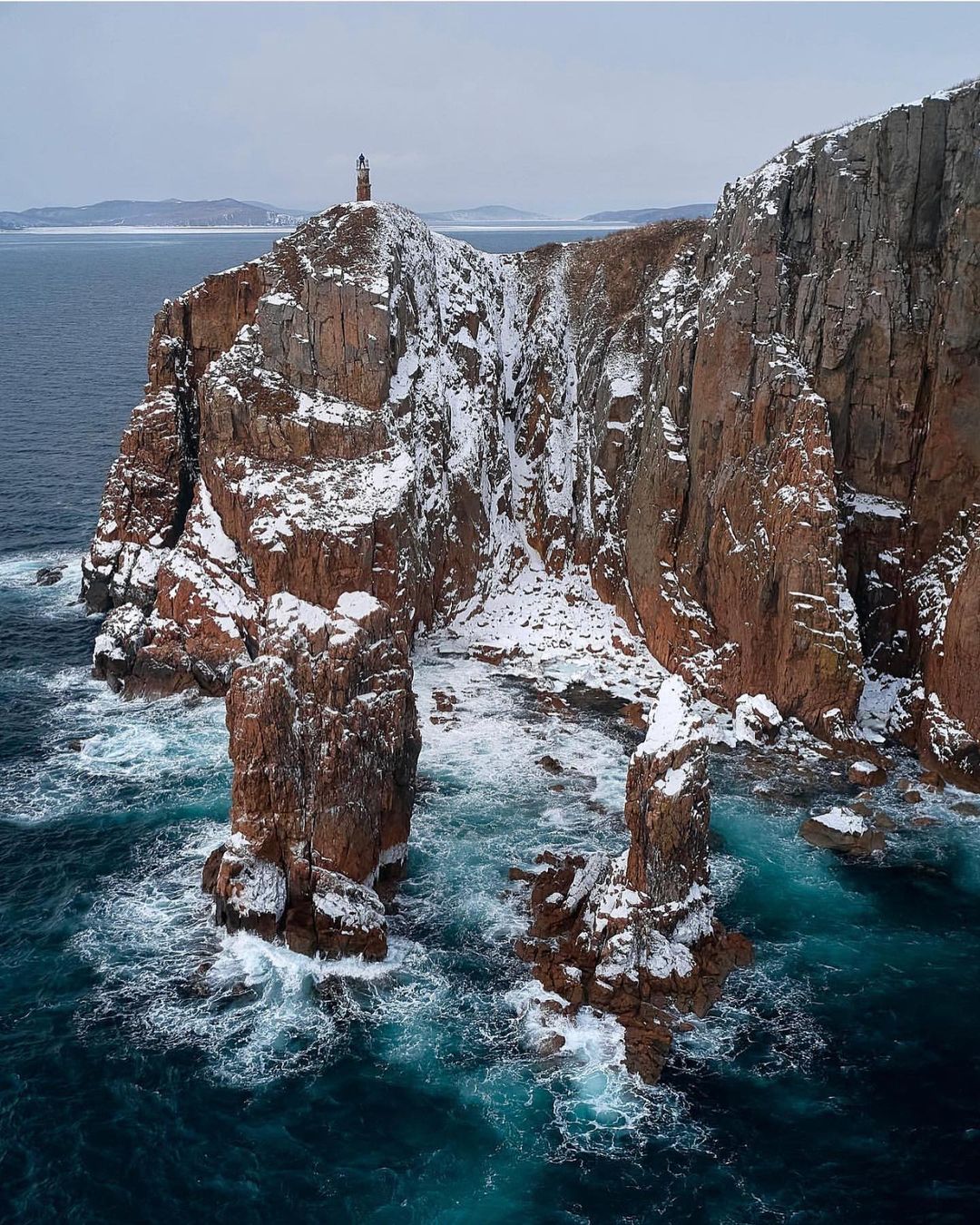 В сети появились красочные фотографии со скал острова Шкота, который соединен мелководной косой с островом Русский, сообщает РИА VladNews со ссылкой на irecommend_vdk.