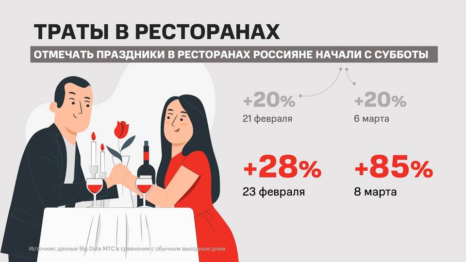 Праздники День защитника Отечества и Международный женский день позади. Специалисты компании МТС проанализировали данные, связанные с прошедшими гендерными праздниками, сообщает РИА VladNews со ссылкой на аккаунт директора МТС в Приморском крае Евгении Сысоевой sysoeva_pro.