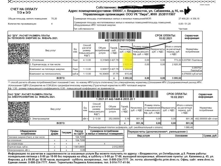 В ПАО «ДЭК» ответили на жалобы жителей улицы Сабанеева, которым пришли квитанции за отоплением с «неожиданным» перерасчетом и крупной суммой платы за тепло, сообщает РИА VladNews со ссылкой на ПАО «ДЭК».