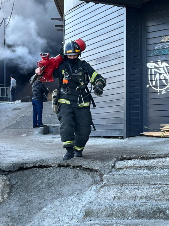 К прибытию пожарных огонь охватил один из павильонов рынка. Наблюдалось открытое горение, от здания шёл столб густого чёрного дыма.