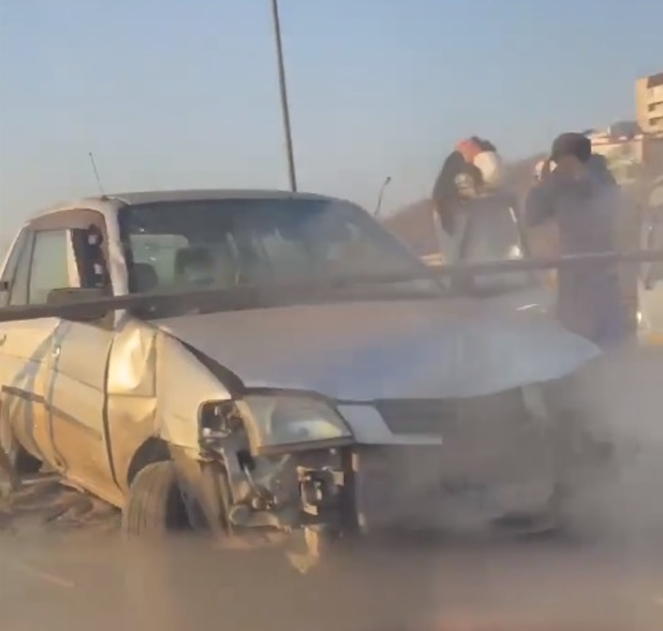Видеоролик успели снять очевидцы ДТП. Транспортное средство протаранило ограждение и разрушило конструкцию, от столкновения помялся капот самого автомобиля.