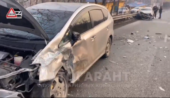 Позже в Сети появилось видео со столкновением машин. Это видео – запись с видеорегистратора пострадавшего авто. На нём видно, как Toyota Corolla Axio начинает «вилять» по своей полосе и резко выезжает на встречку. Затем – удар. Стекло Toyota Prius трескается, машины отлетают к обочине и врезаются в леера.