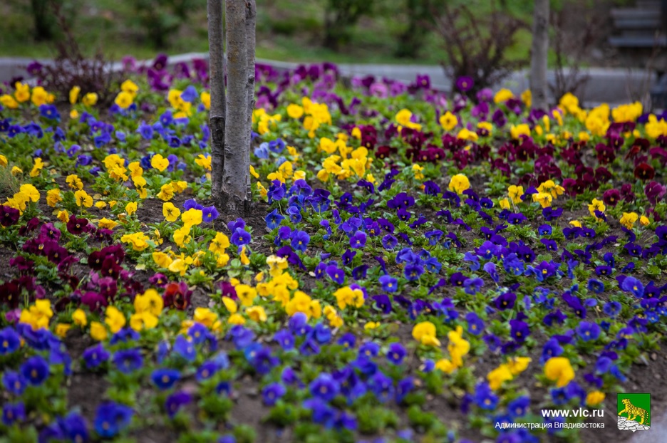 Так, в конце апреля озеленители приступили к высадке однолетних растений. Первые виолы были высажены на владивостокском Арбате. Здесь специалисты высадили три тысячи цветов. Также в преддверии Дня Победы цветники появились на центральной площади, Корабельной набережной, в Гайдамаковском сквере и у памятника пограничникам.