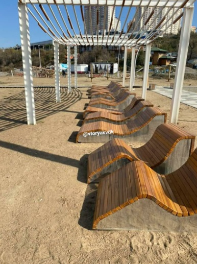 Также, недобросовестные граждане «расправились» с лежаками – некоторые растащили в разные стороны, а некоторые придвинули друг другу.