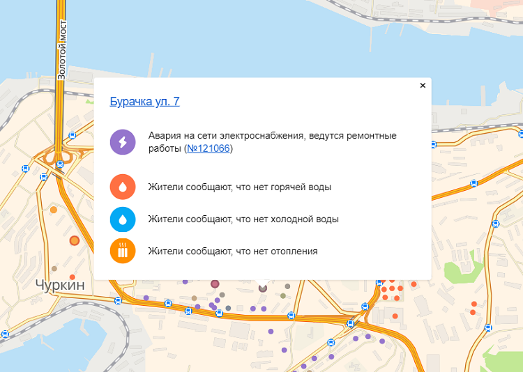 Очередные перебои с подачей горячей воды и электроэнергии произошли во Владивостоке, сообщает РИА VladNews. Судя по онлайн-картам отключений на сайте VL.RU, район Чуркина будто бы поделило на две части: одни жители Первомайского района сидят без света, другие – без кипятка.