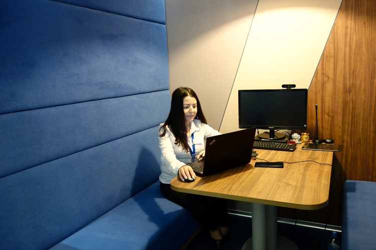 В отделении организованы комфортные зоны обслуживания с мягкой мебелью, установлены два банкомата. Специалисты проводят операции с помощью ноутбуков, подписать документы можно прямо в мобильном приложении. Представители бизнеса могут воспользоваться услугами персонального менеджера и переговорной комнатой.