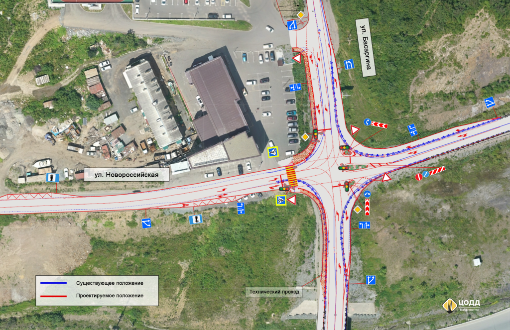 Центр организации дорожного движения (ЦОДД) планирует изменить движение на перекрестке улиц Новороссийской и Басаргина во Владивостоке. По новому проекту здесь установят светофоры, изменят ширину проезжей части, сделают направляющие островки и тротуары с пешеходным переходом, сообщает РИА VladNews со ссылкой на пресс-службу администрации Владивостока.