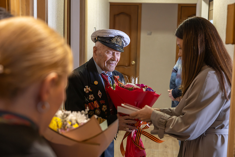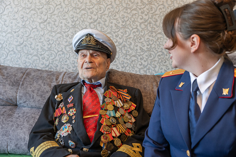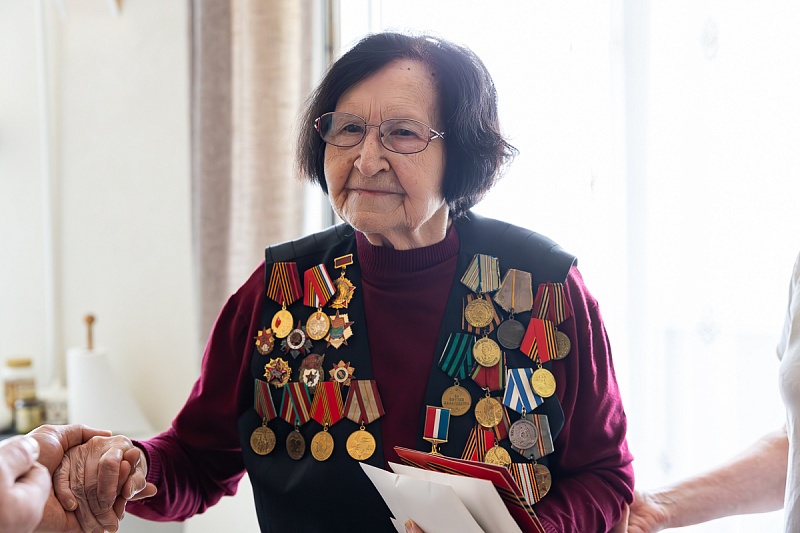 Ещё одну героиню войны, Валентину Васильевну Евстафьеву, поздравил вице-мэр Максим Акульшин. Родившись в Шкотовском районе Приморья, она с июня 1941 года работала в техническом управлении штаба Тихоокеанского флота, занимаясь ремонтом кораблей. После войны продолжила службу и ушла на пенсию лишь в 1982 году.