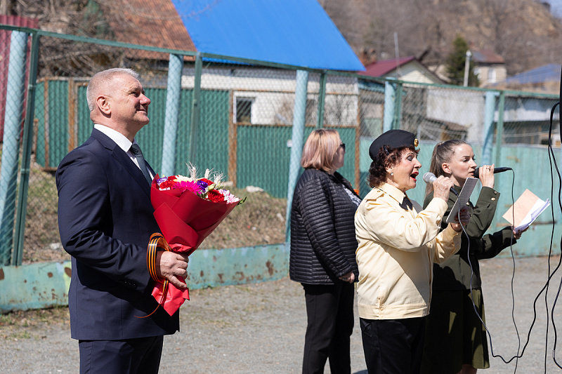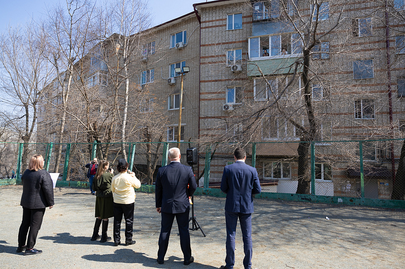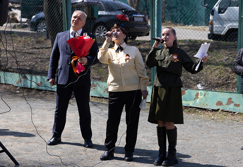 На концерте во дворе ветерана присутствовали вице-мэр Владивостока Дарья Стегний и сотрудники Следственного комитета Приморья.