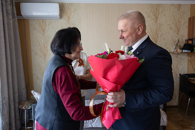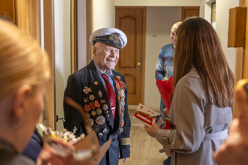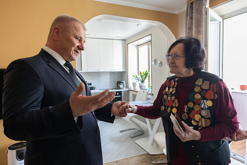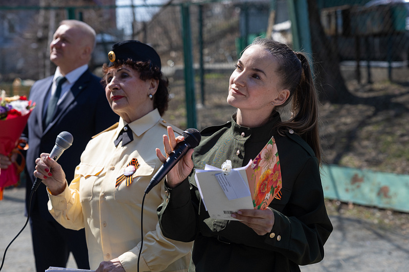 Заместитель главы администрации Владивостока Дмитрий Свитайло не только вручил ветерану подарки, но и сообщил о благоустройстве её двора: в подъезде провели ремонт, а дорогу к дому заасфальтировали.