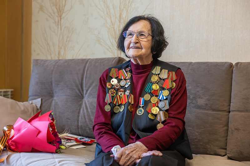 В этот же день праздничный концерт организовали для Марии Алексеевны Гладун. Родом из Донбасса, она встретила войну в Красной Поляне под Сочи. Несмотря на медицинское образование, её направили в школу радистов — в войсках остро не хватало связистов.