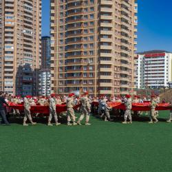 В церемонии открытия приняли участие глава города Константин Шестаков, представители епархии, ветераны Великой Отечественной войны и боевых действий, участники СВО, активисты «Движения Первых», юнармейцы и жители города. Центральным моментом стала акция «Знамя Победы»: школьники развернули красные полотна с именами героев, вышитыми своими руками вместе с педагогами и родителями. Каждое знамя состоит из 256 фрагментов ткани.
