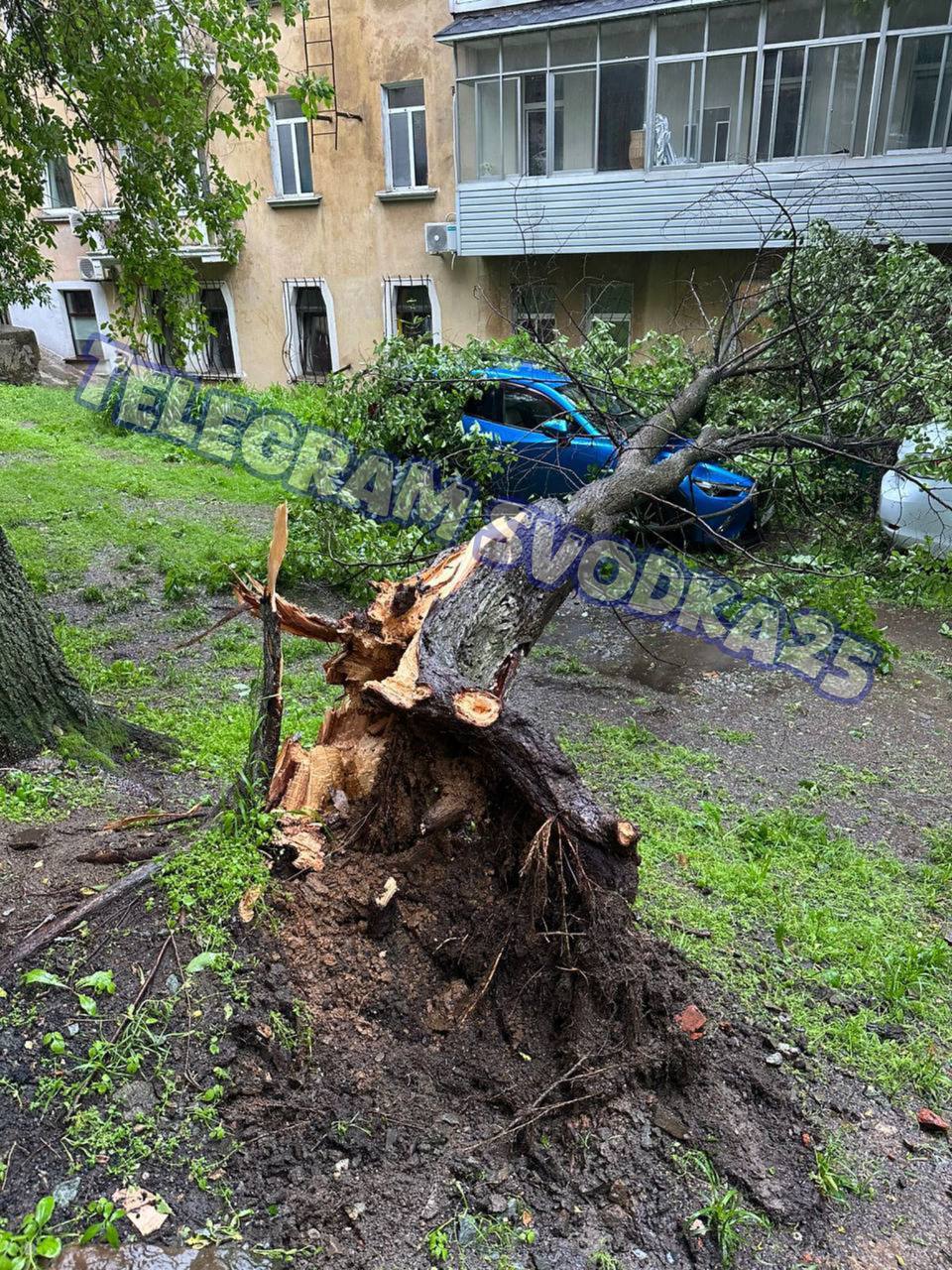 В разных районах города местные жители сообщали о поваленных деревьях. В нескольких случаях, например, на Калинина, Тигровой и Народном проспекте, они упали на припаркованные рядом автомобили.