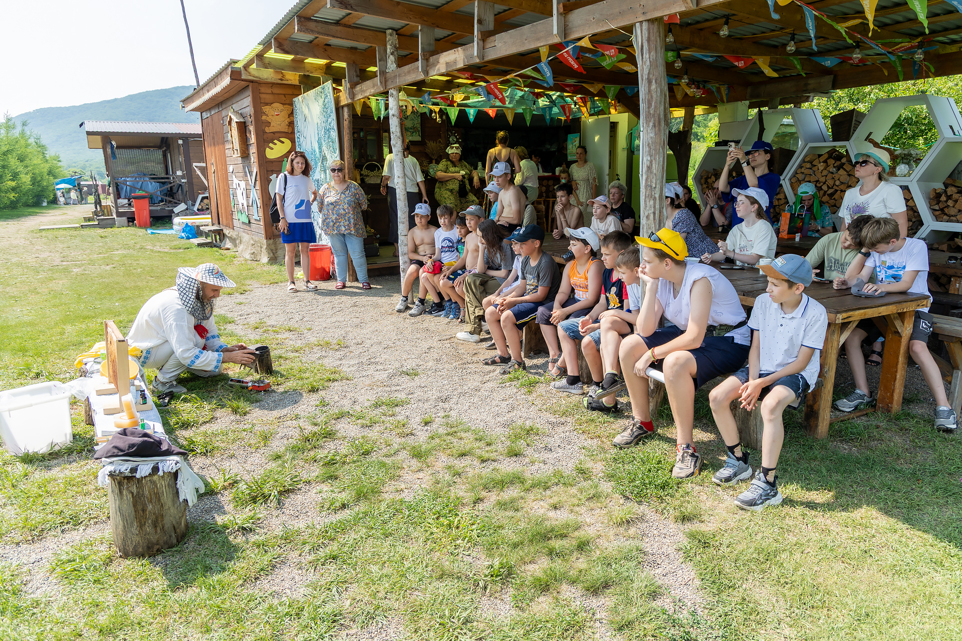 Ребята познакомились с главными инструментами пчеловода, узнали состав пчелиной семьи и даже послушали, о чем говорят эти удивительные насекомые. В конце увлекательной беседы мальчишки и девчонки попробовали ароматный приморский мед и сделали своими руками свечу желаний из пчелиного воска.