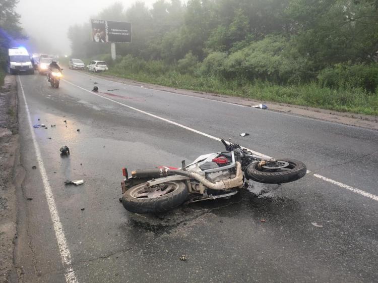 По предварительным данным ГИБДД, водитель мотоцикла Yamaha двигался по объездной дороге от перекрестка Золотари в сторону улицы Заводской. При обгоне автомобиля Toyota Corolla на подъеме мотоциклист не выдержал безопасный боковой интервал, потерял управление и выехал на встречную полосу. Там произошло столкновение с автомобилем Nissan Note.