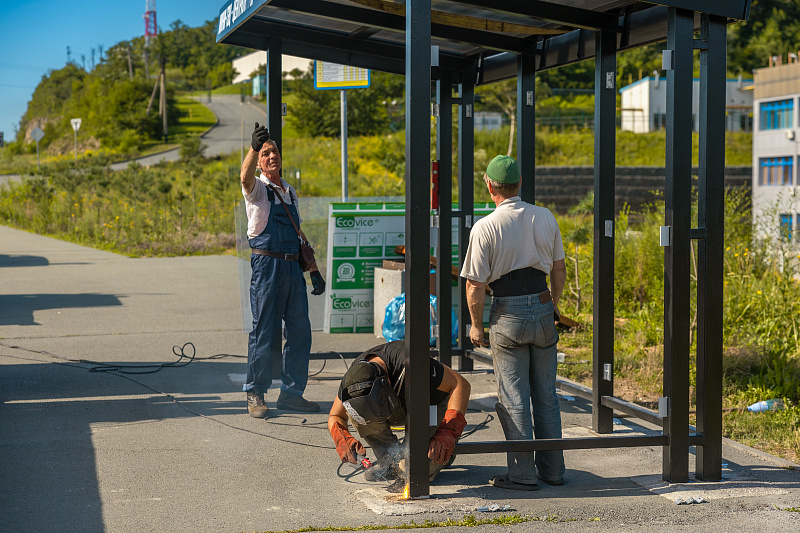 Ещё семь павильонов, на «Парке Победы», «Фабрике Заря», «Галактике», «Колледже ВГУЭС», «Бухте Тихой», «Добровольского» и «Второй Речке», отремонтированы в этом году силами муниципальной службы «Содержание городских территорий».