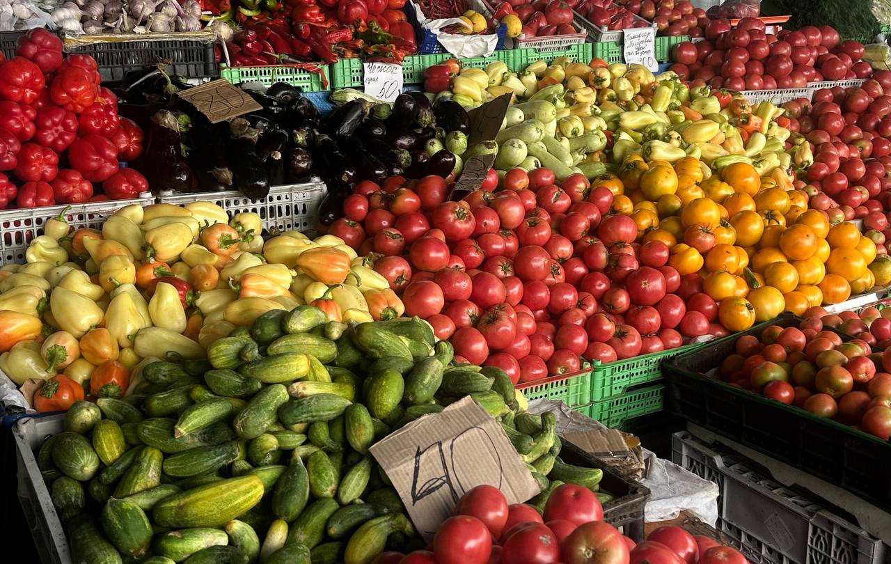 На Спортивном рынке килограмм томатов можно приобрести от 40 до 70 рублей в зависимости от сорта. Самыми доступными остаются помидоры «Новичок», выращенные в открытом грунте. Более дорогие разновидности — такие как «Бычье сердце» и «Японка» — продаются до 250 рублей за килограмм. Огурцы также значительно потеряли в цене: от 20 рублей за килограмм. Овощи местных фермеров стоят дороже — до 150 рублей, в зависимости от качества и сорта. Продавцы подтверждают: август традиционно приносит снижение цен на сезонные продукты.