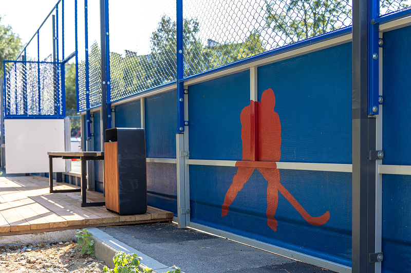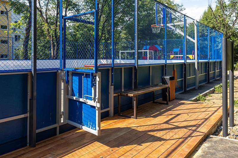 Три объекта уже готовы к открытию. Возле дома № 6 на улице Суханова завершена реконструкция: вместо старой хоккейной коробки появилась универсальная площадка с резиновым покрытием, баскетбольными стойками и ограждением. Осталось нанести разметку, дорисовать классики и установить информационные таблички.
