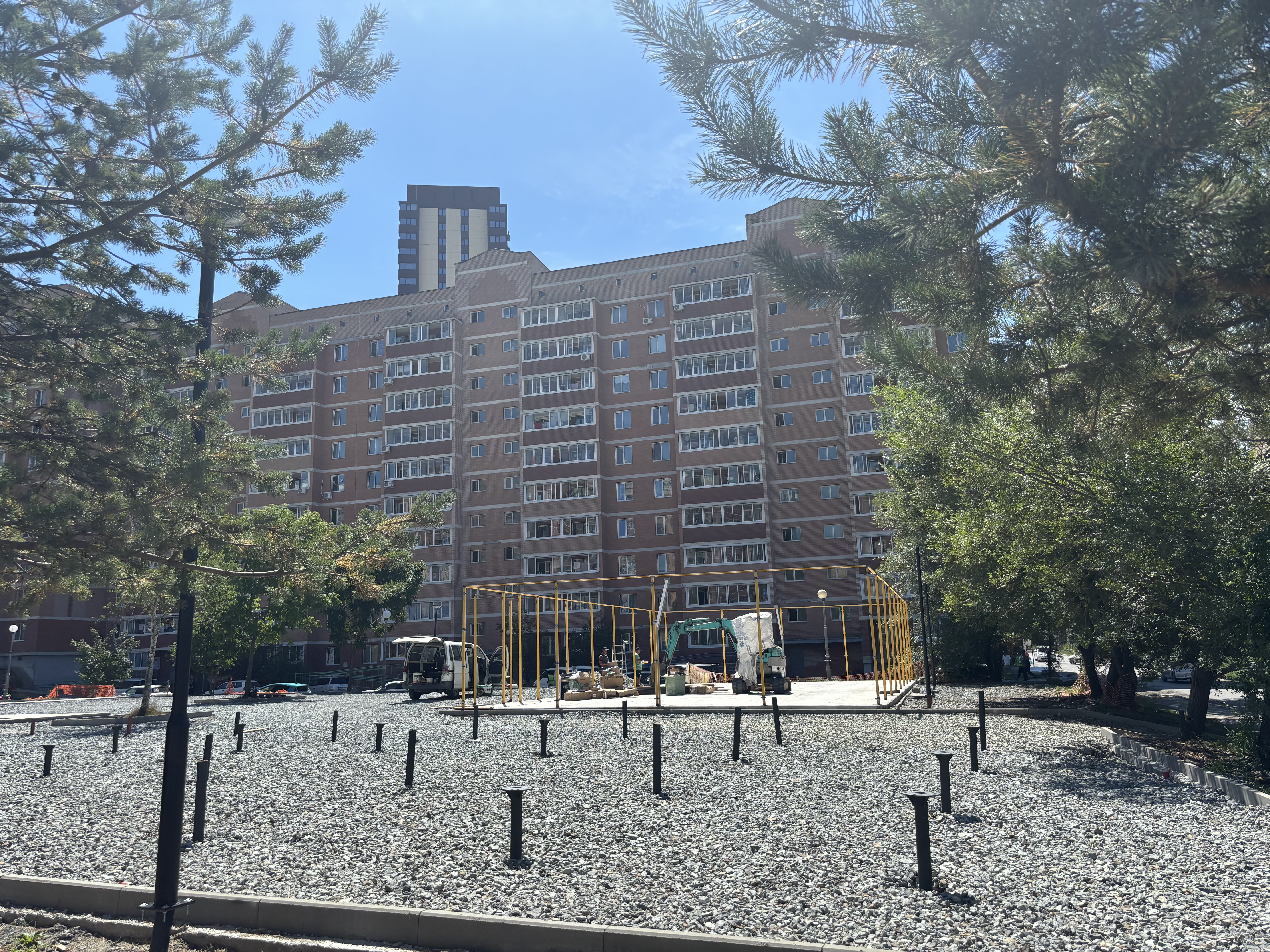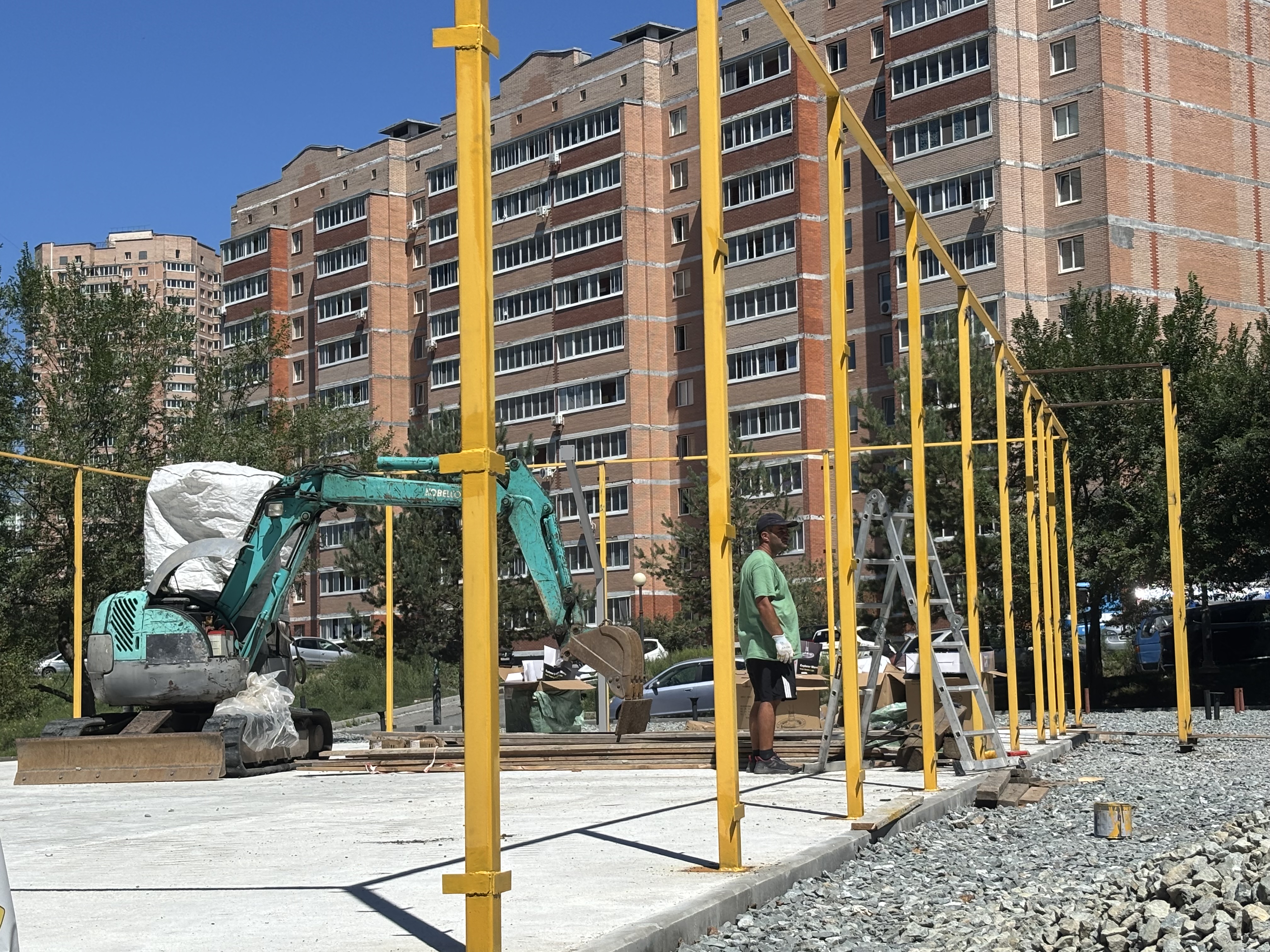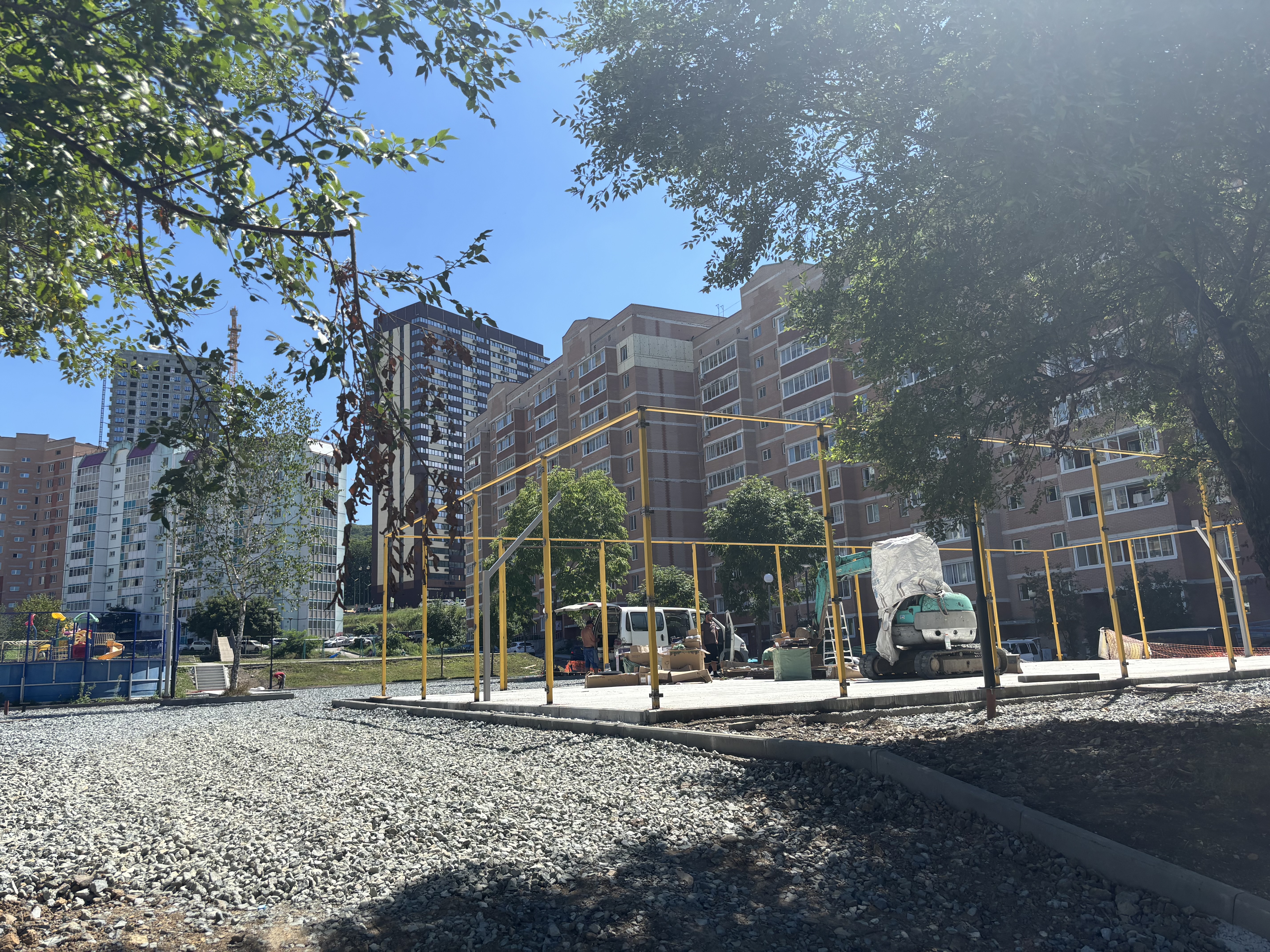 Сейчас идет подготовка основания на площадке у дома №9, где планируется установка большой спортивной площадки.