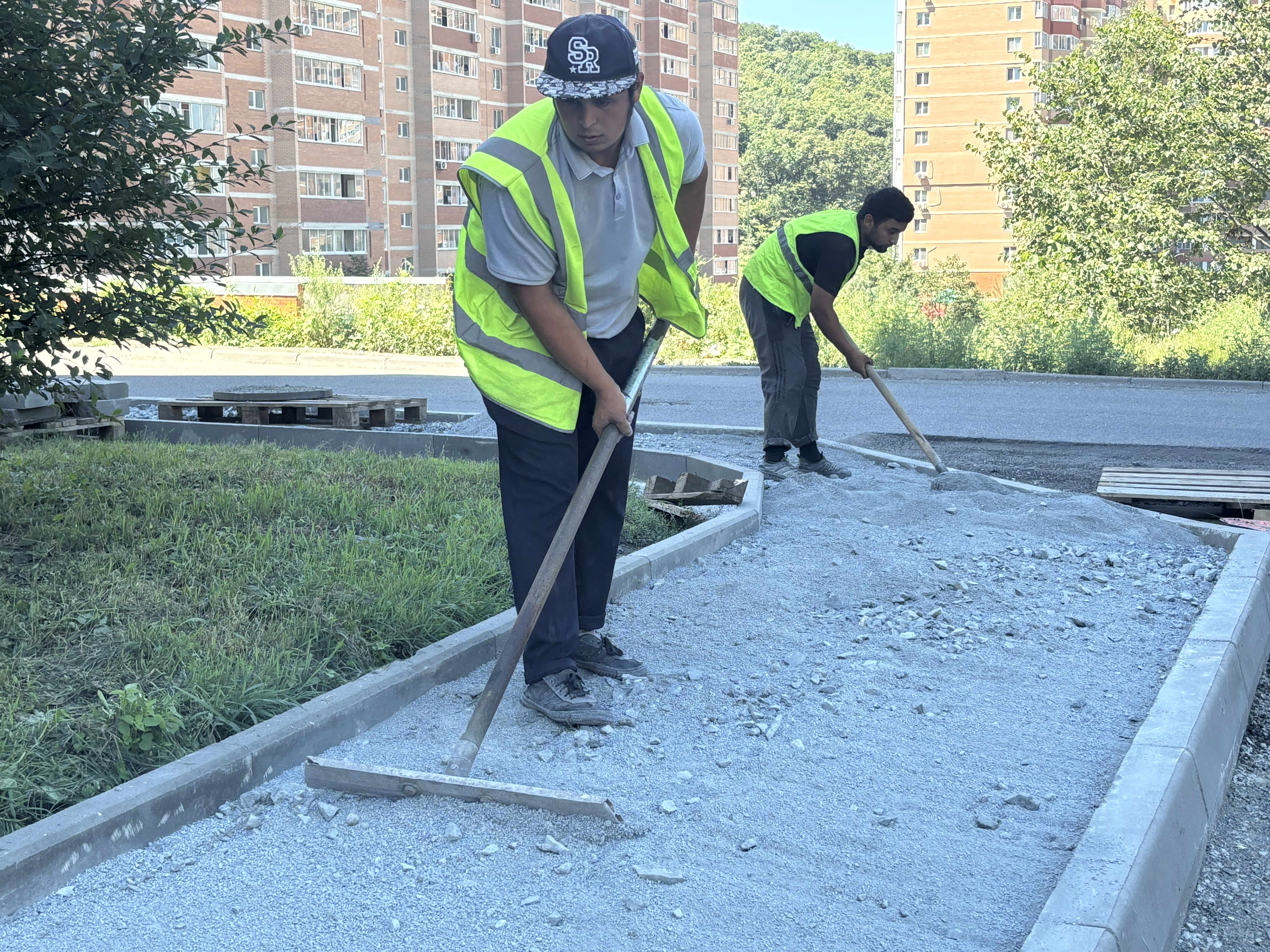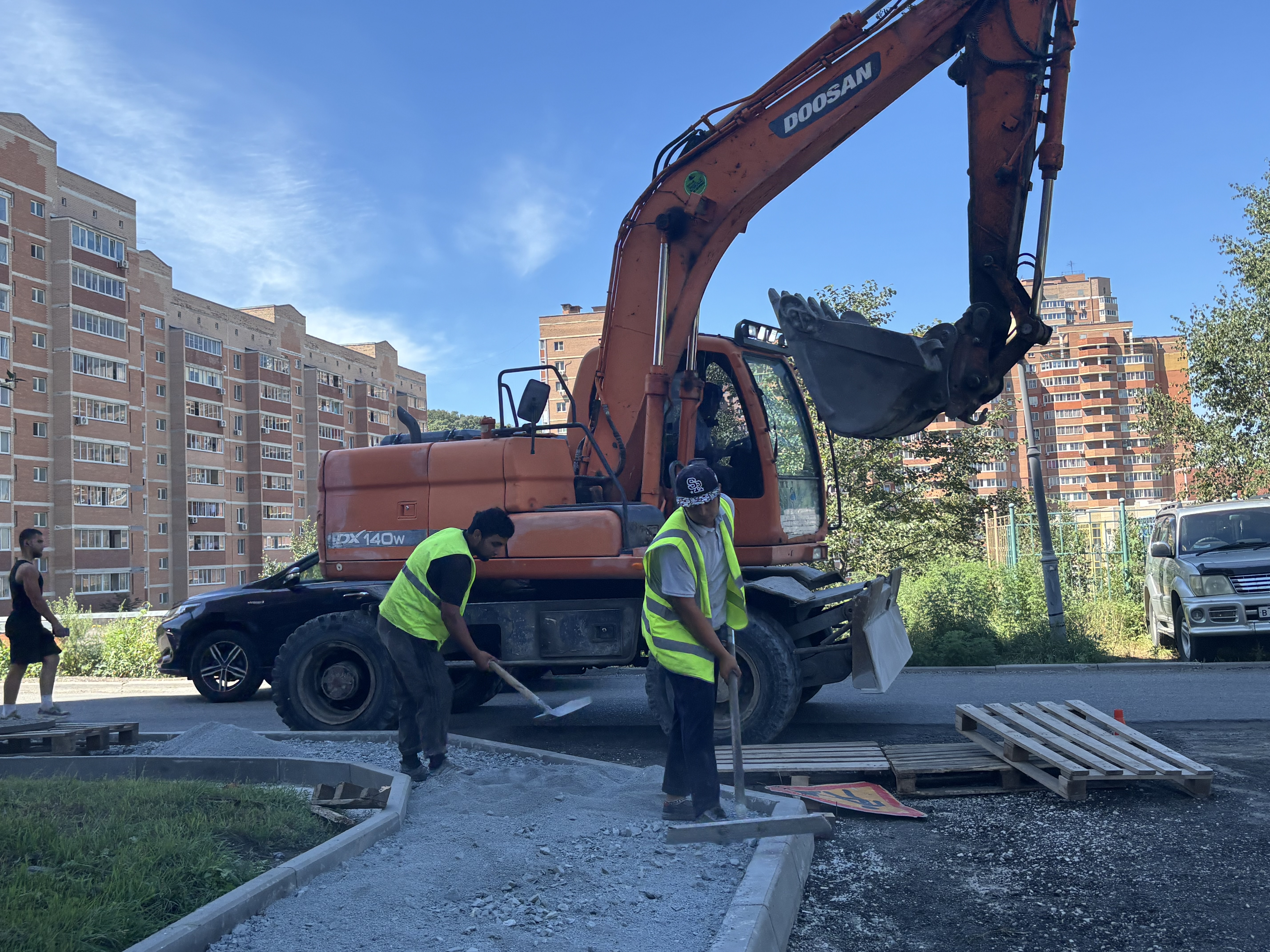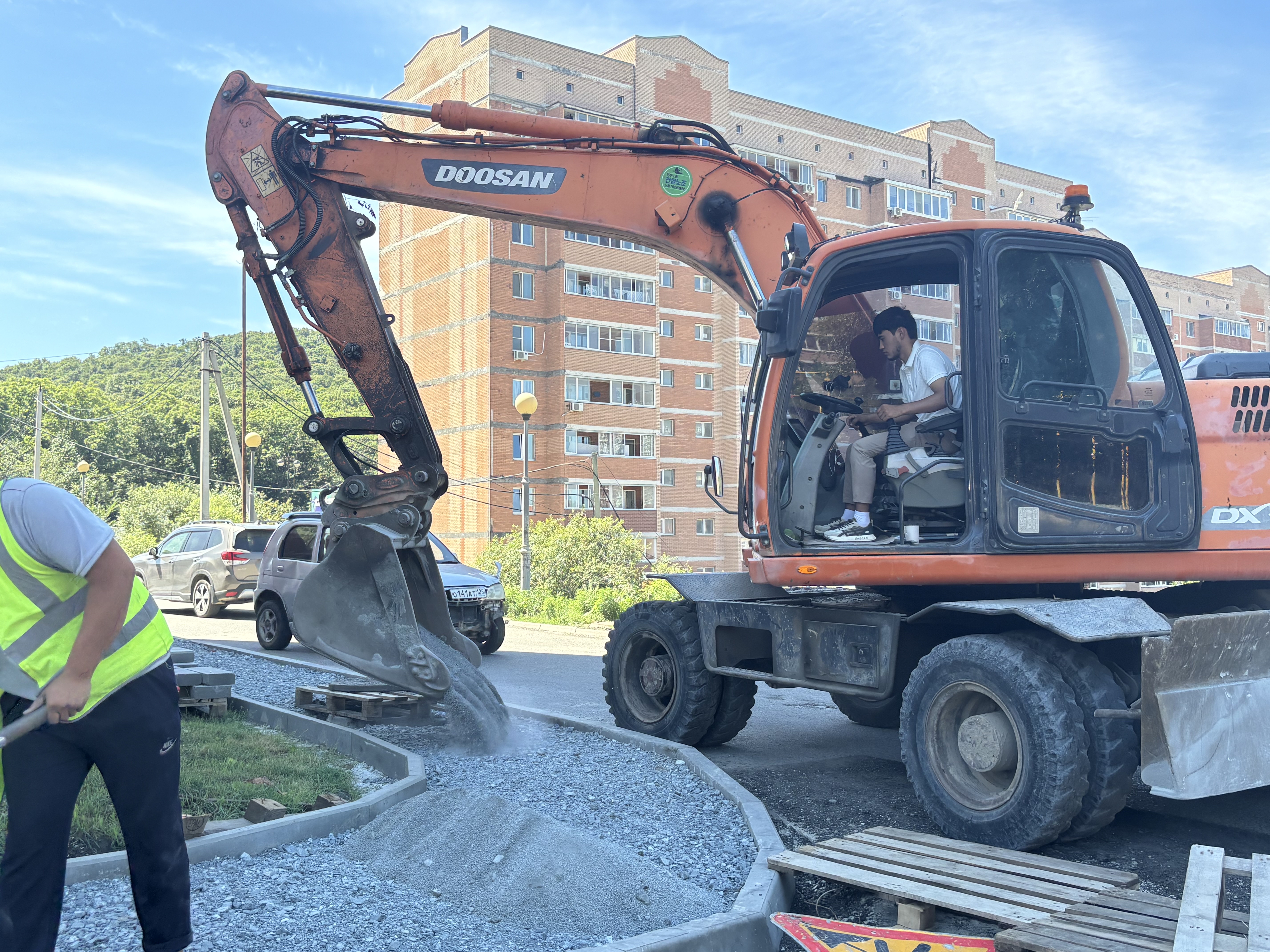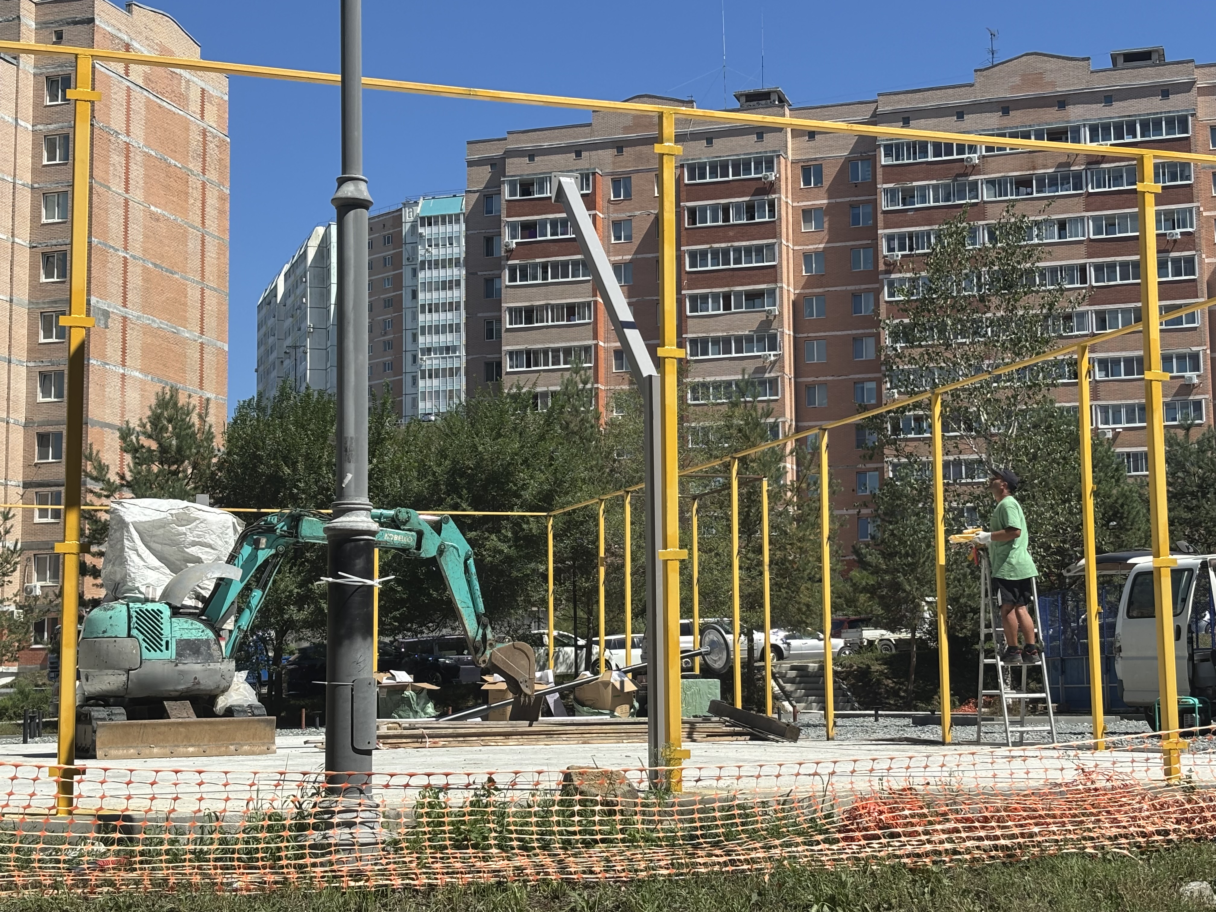 Сейчас идет подготовка основания на площадке у дома №9, где планируется установка большой спортивной площадки.