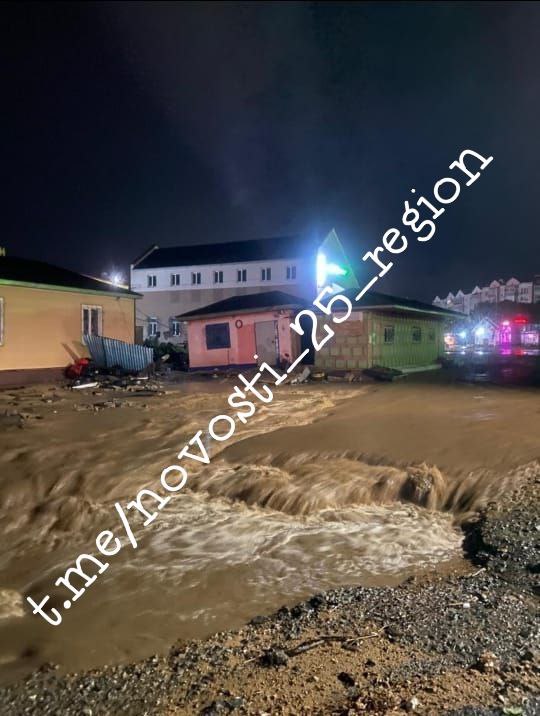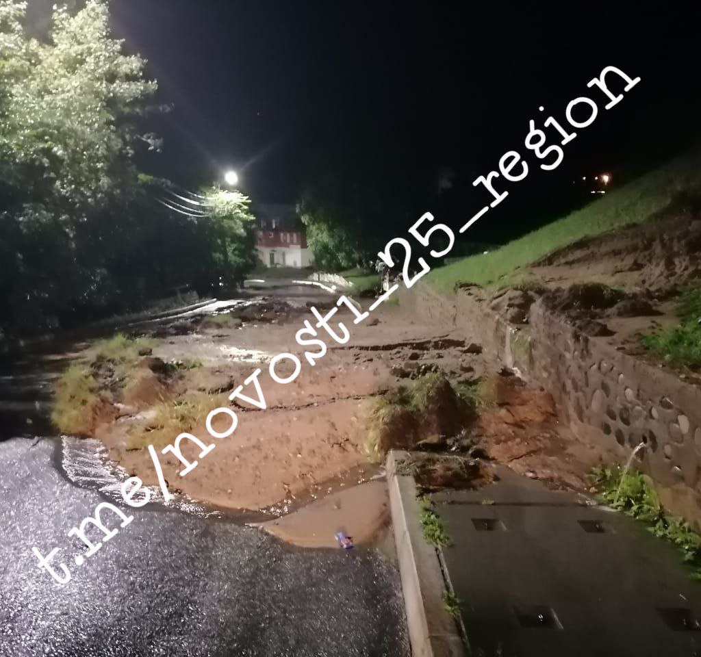 Как передает телеграм-канал novosti_25_region, в результате сильных потоков воды повреждено дорожное полотно.