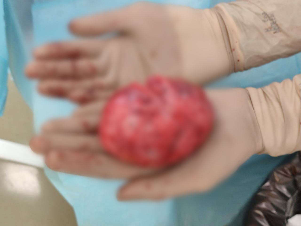 У женщины обнаружили крупную миому (10×6 см) с признаками распада, что создавало серьезную угрозу преждевременных родов. Ситуация требовала немедленного вмешательства.