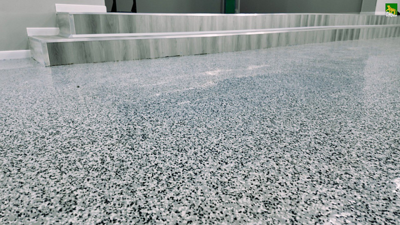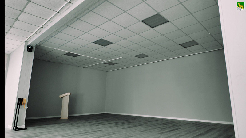 В столовой и кухонной зоне уложили новое напольное покрытие, отреставрировали потолок, покрасили стены и установили современное освещение. Особое внимание уделили зоне сцены, которая теперь станет более комфортной площадкой для проведения торжественных мероприятий.