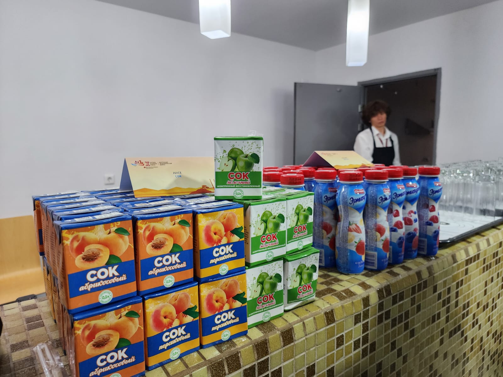 На десерт журналисты могли выбрать свежее яблоко, питьевой йогурт или сок, чтобы быстро восстановить силы перед следующим мероприятием.