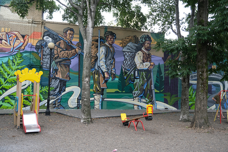 В сквере Городов-побратимов Владивостока появилась масштабная художественная роспись — мурал. На стене изображены символы Дальнего Востока: амурский тигр, известный исследователь Владимир Арсеньев, его проводник Дерсу Узала и бескрайние просторы Уссурийской тайги, сообщает РИА VladNews со ссылкой на пресс-службу администрации Владивостока.