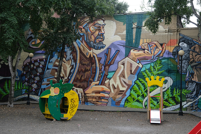 Это не единственный проект по обновлению городского пространства. Этим летом в рамках фестиваля «Лица городов» новые муралы украсили опоры Золотого моста, подпорную стену в микрорайоне Патрокл и фасад спорткомплекса «Олимпиец».