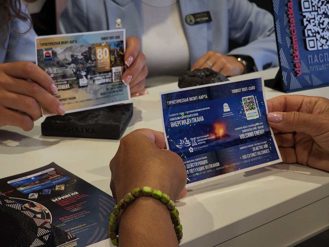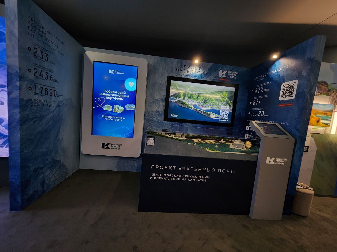 «На этой зоне павильона наши гости могут ознакомиться с крупными проектами в области рыбодобычи, в области инвестиционных проектов, это верфи, это крупные океанические пути, крупнейшие туристические проекты, о которых также мы нашим гостям здесь рассказываем», - поделиласьзаместитель директора Камчатского выставочно-туристического центра Валерия Костерева.