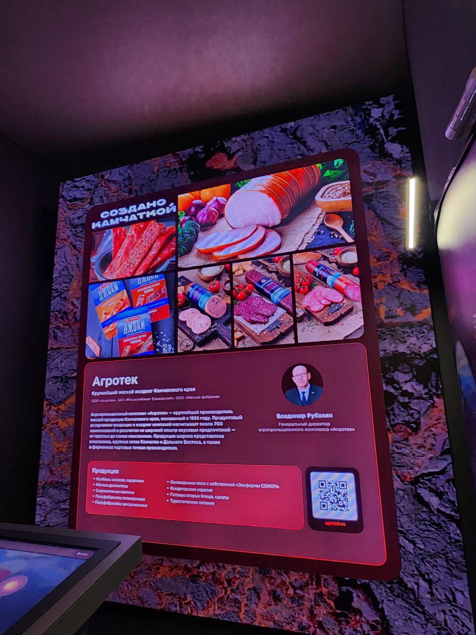 Дополняет павильон Камчатского края — зона энергетика вулкана, где представлены результаты реализации крупных проектов в энергетике, перерабатывающей промышленности и туризме.