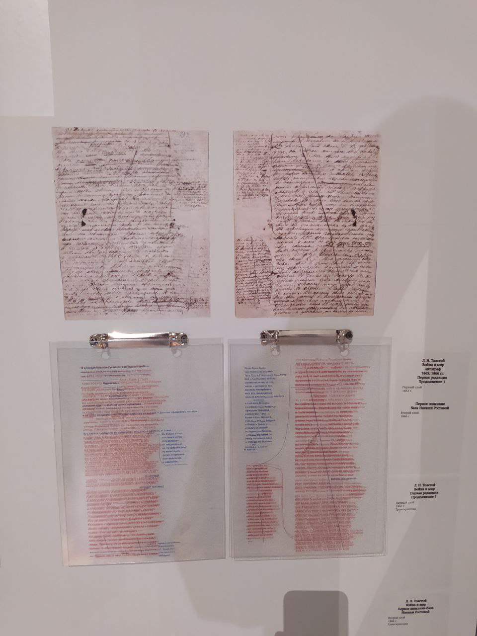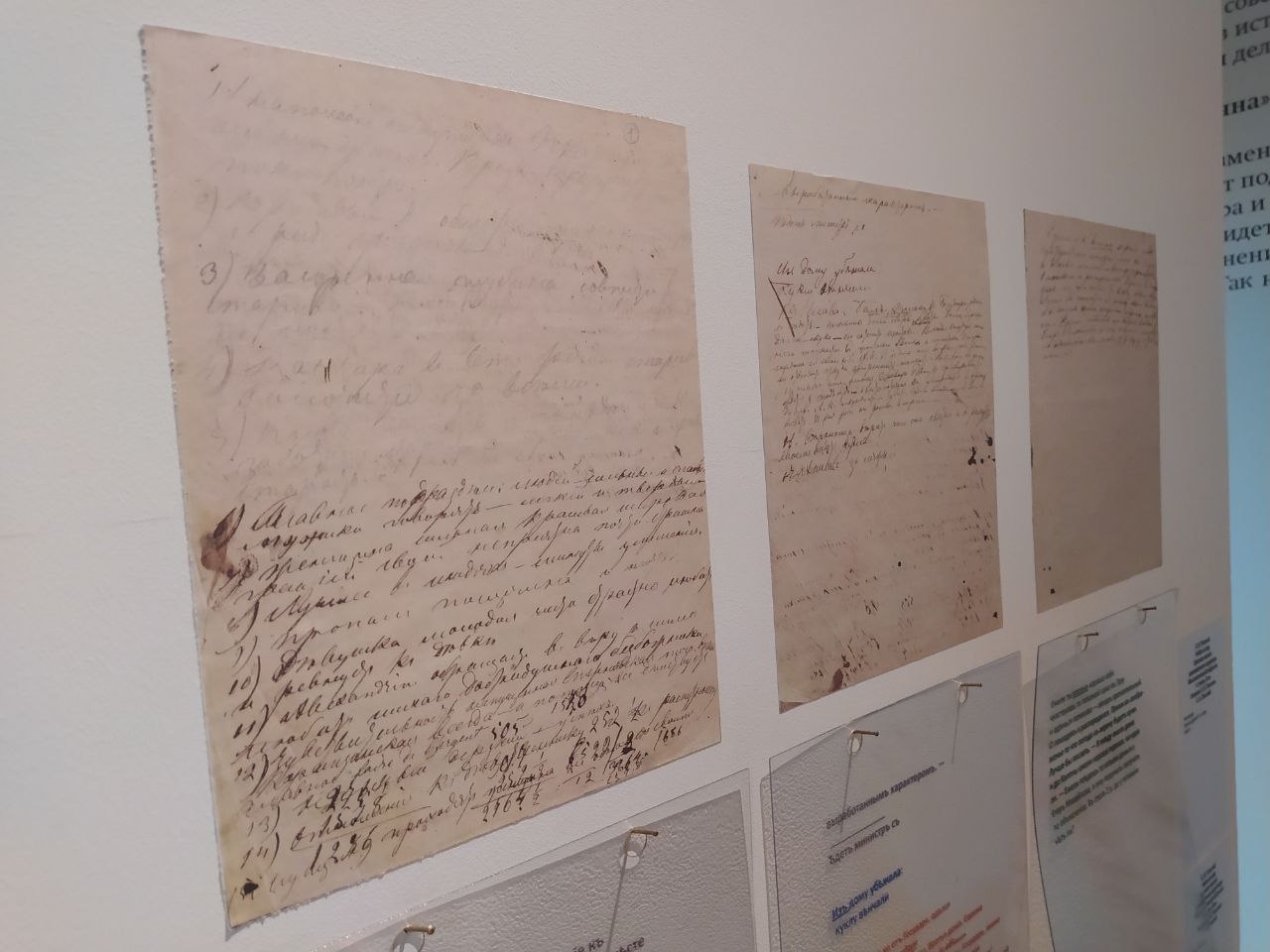 «Рукописи – это не черновики. Это совершенно другие тексты: отброшенные сюжеты и герои, нереализованные мысли, которые преобразовались в другие формы. Если мы будем знать всю эту работу, то, возможно, сможем понять сам текст «Войны и Мира». В нашем зале мы представили некоторые истоки и попытались показать, что мотивировало Толстого на такой гигантский труд — 7 лет работы над произведением», — отмечает экскурсовод.