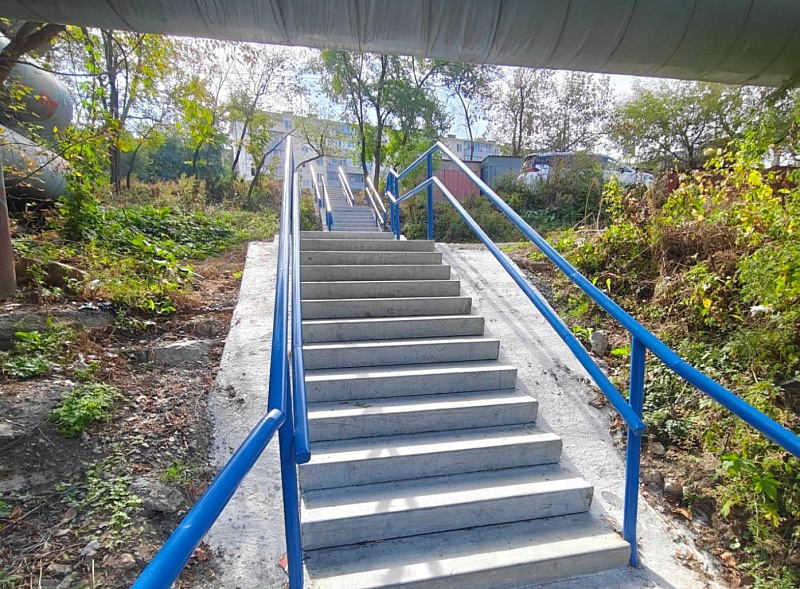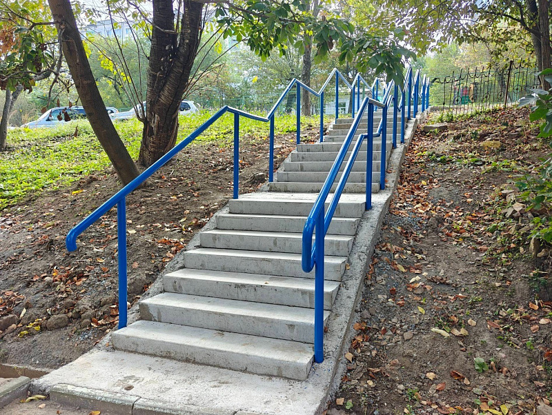 Помимо капитального ремонта, специалисты муниципального предприятия «Зелёный Владивосток» проводят текущее обслуживание лестниц: устраняют локальные повреждения ступеней и перил, ликвидируют провалы и обновляют покраску ограждений.