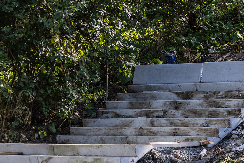 Одной из ключевых строек на сегодняшний день является лестница в районе дома №16 на улице Давыдова. Подрядчики полностью демонтировали старую конструкцию и приступили к финальному этапу — установке новых ступеней и перил. Параллельно работы ведутся на Русской, 21, где идет заливка бетонного основания перед монтажом лестничного марша.