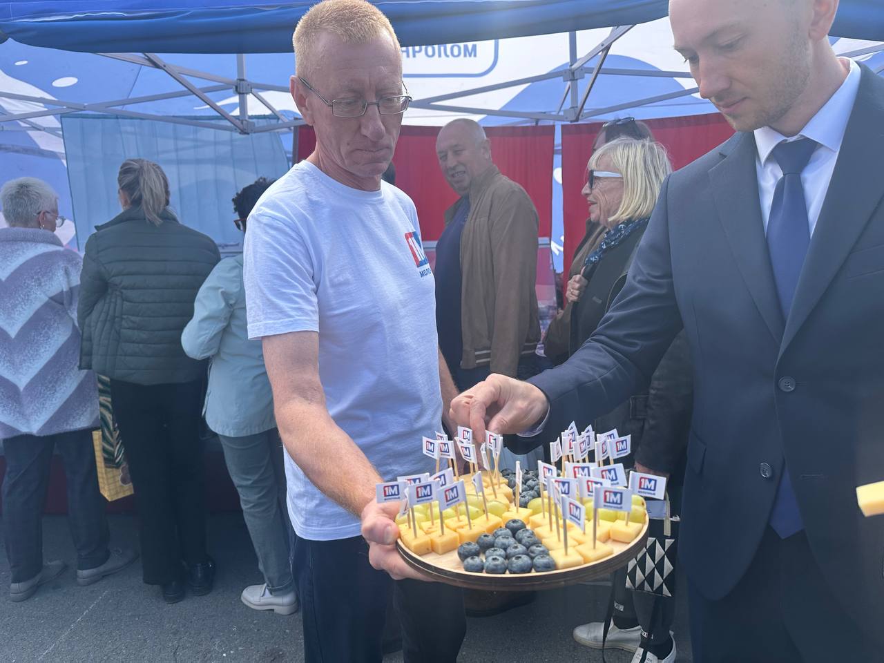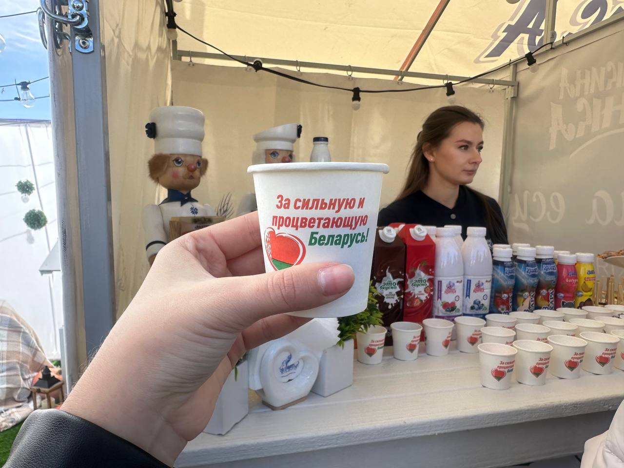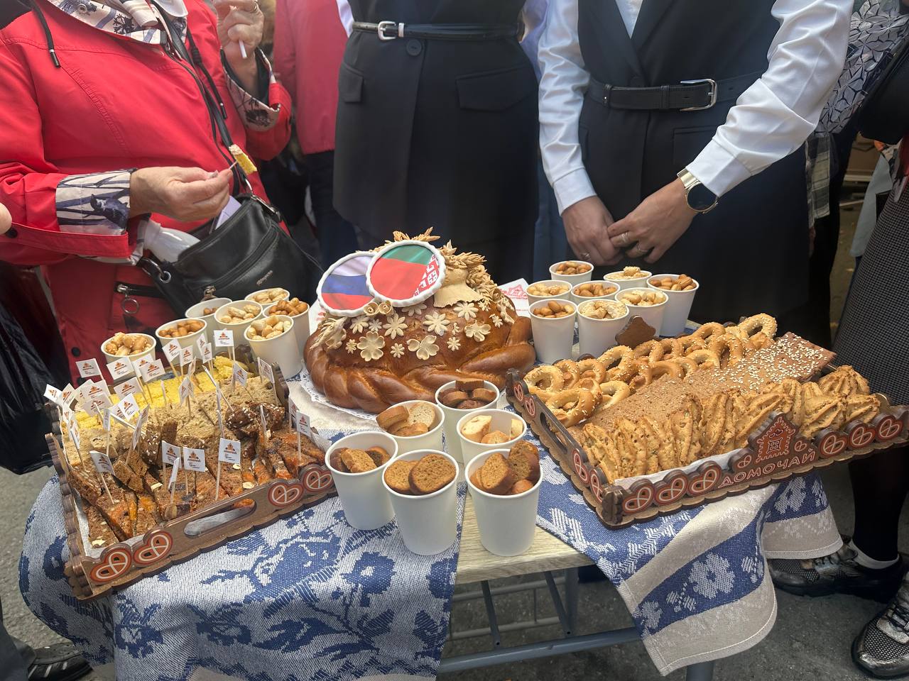 Вдоль выставки проходит ярмарка белорусских товаров. У прилавка кондитерской фабрики «Красный Пищевик» из Бобруйска стоят посетители. Анастасия, представительница фабрики, рассказывает: