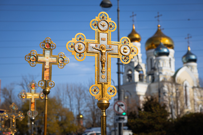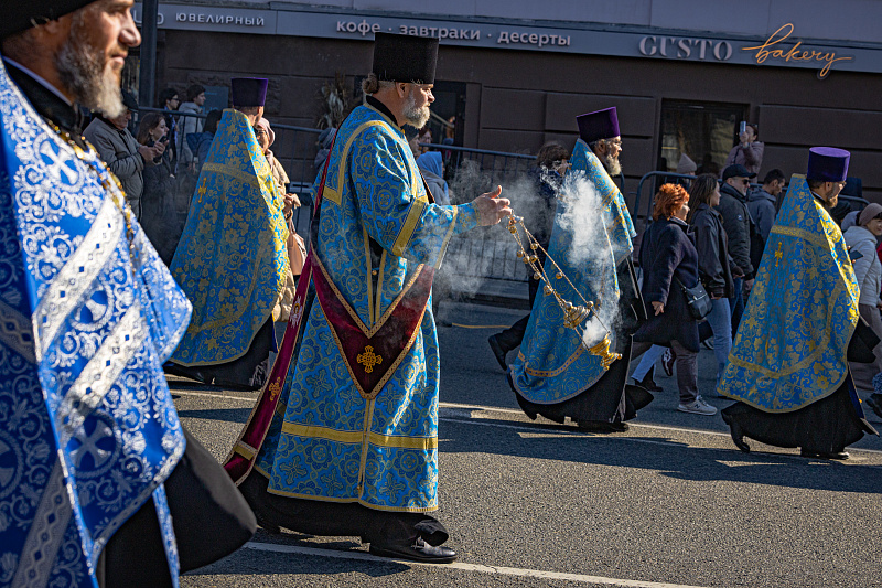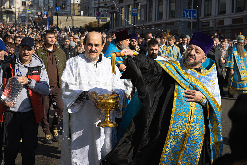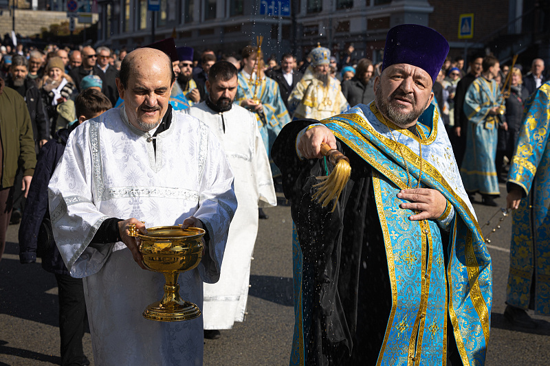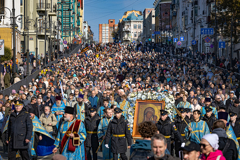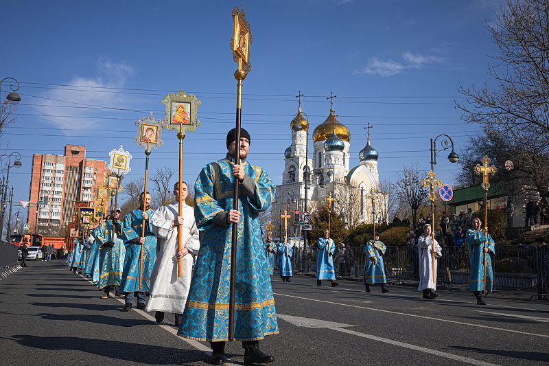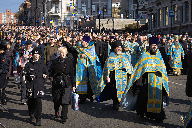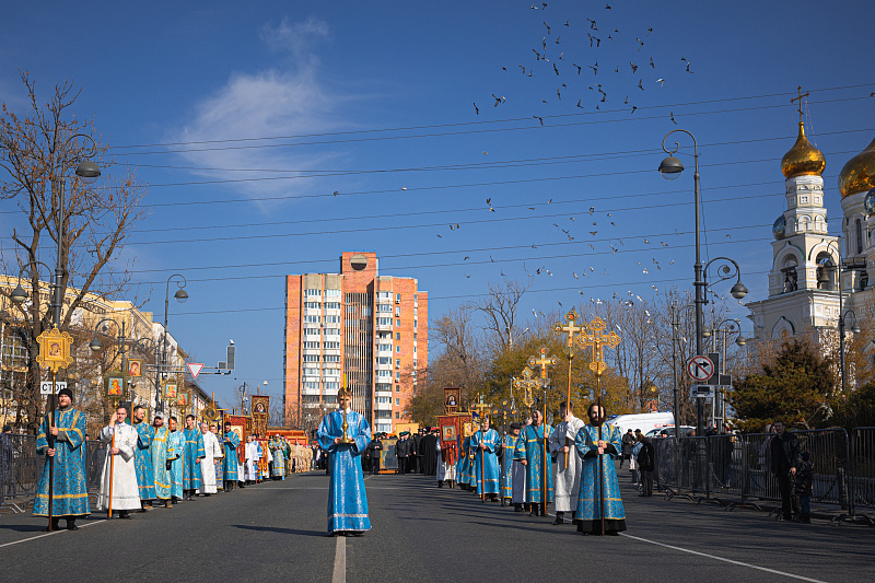 Праздничный день начался с религиозных церемоний. В Покровском соборе в 9:30 утра состоялось праздничное богослужение, после которого верующие приняли участие в Крестном ходе. Колонна прошла по Океанскому проспекту до Спасо-Преображенского кафедрального собора. В шествии приняли участие Митрополит Владивостокский и Приморский Павел, губернатор Приморского края Олег Кожемяко, глава Владивостока Константин Шестаков, председатель городской Думы Андрей Брик, а также представители духовенства, молодежных и патриотических объединений.