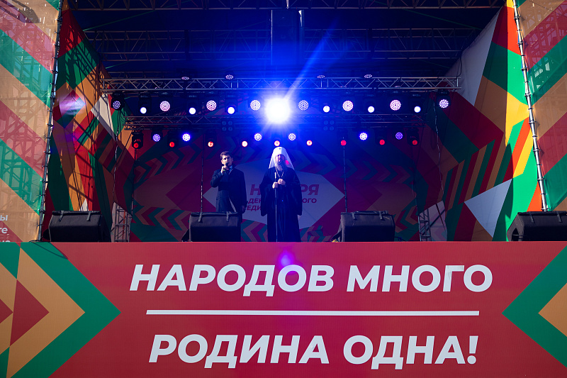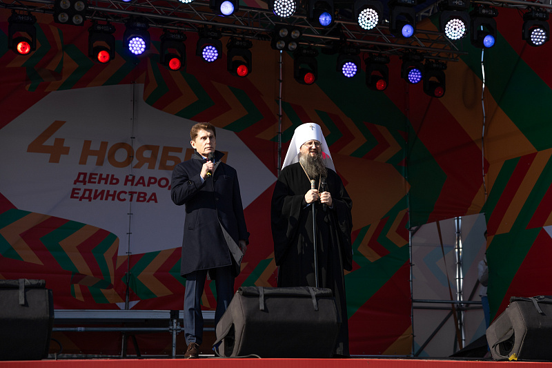 После завершения шествия его участники присоединились к народным гуляниям. С главной сцены губернатор Олег Кожемяко поздравил приморцев, подчеркнув, что сила России — в единстве ее народа, которого объединяет искренняя любовь к Родине и готовность поддержать друг друга. Митрополит Павел также обратился к горожанам с поздравлениями, напомнив, что для православных христиан этот день совпадает с празднованием в честь Казанской иконы Божией Матери.