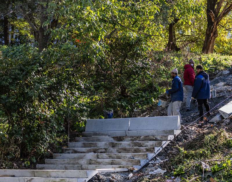 Параллельно с озеленением велась работа по благоустройству инфраструктуры: локально отремонтировано 57 лестничных спусков, что повышает не только эстетику, но и безопасность передвижения горожан.