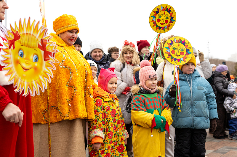Торжественное шествие «Масленичного поезда» дало старт мероприятию. Колонна наряженных горожан с песнями и плясками проследовала от фонтана набережной Спортивной гавани до главной сцены у национального центра «Россия». Здесь для гостей выступили творческие коллективы, а аниматоры развлекали публику хороводами и забавами.