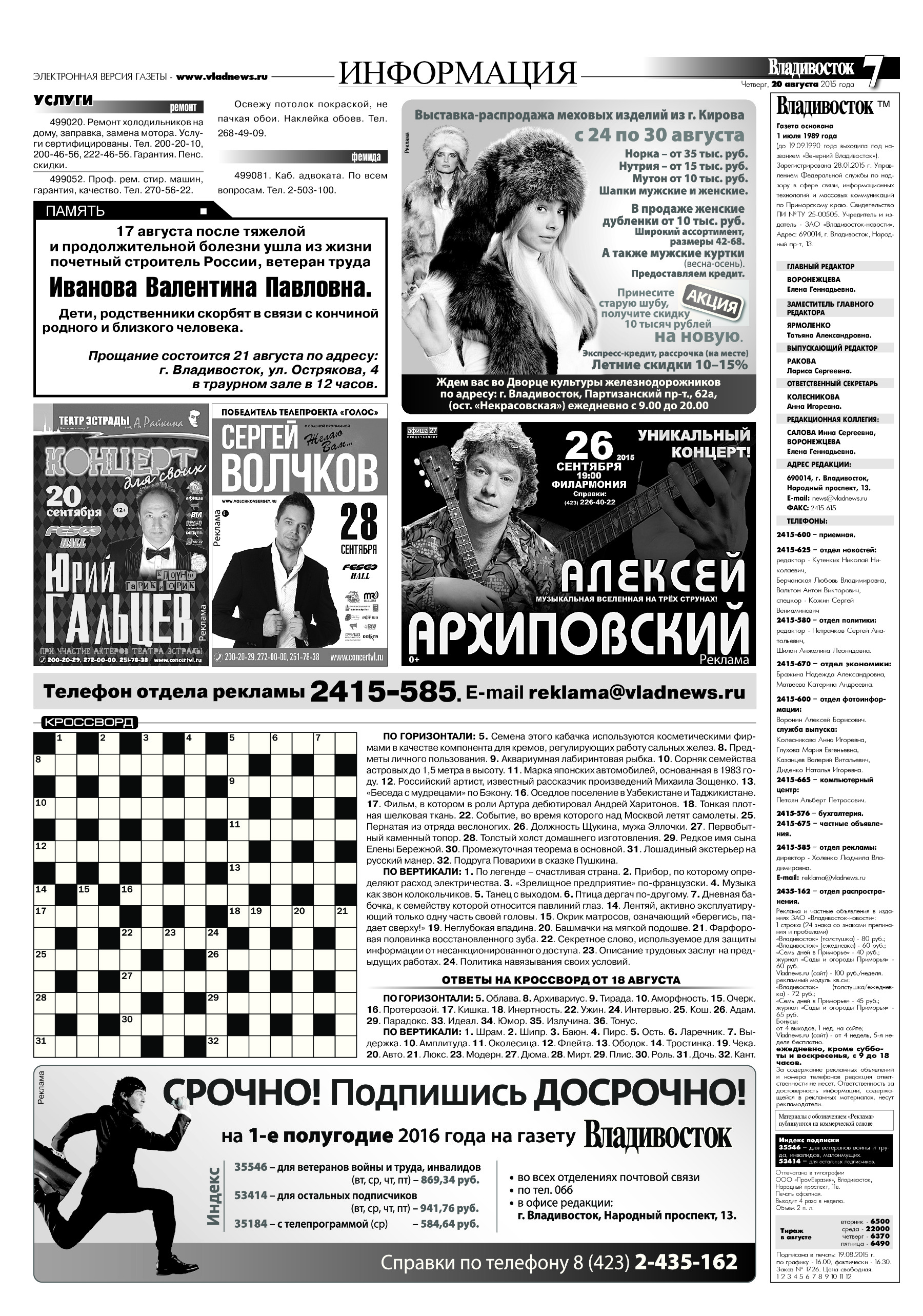 Электронная версия газеты "Владивосток" №3790 (124) от 20.08.2015
