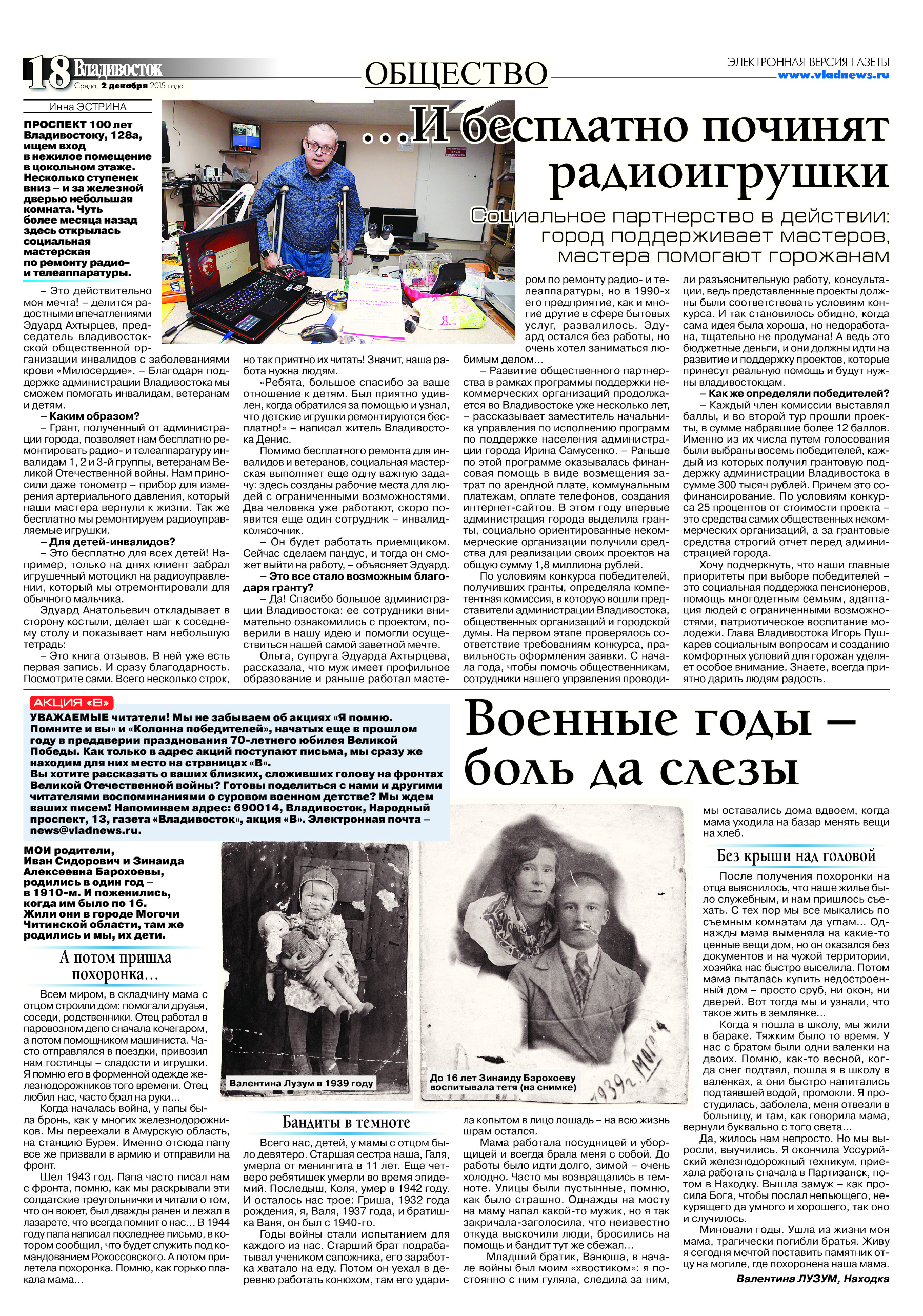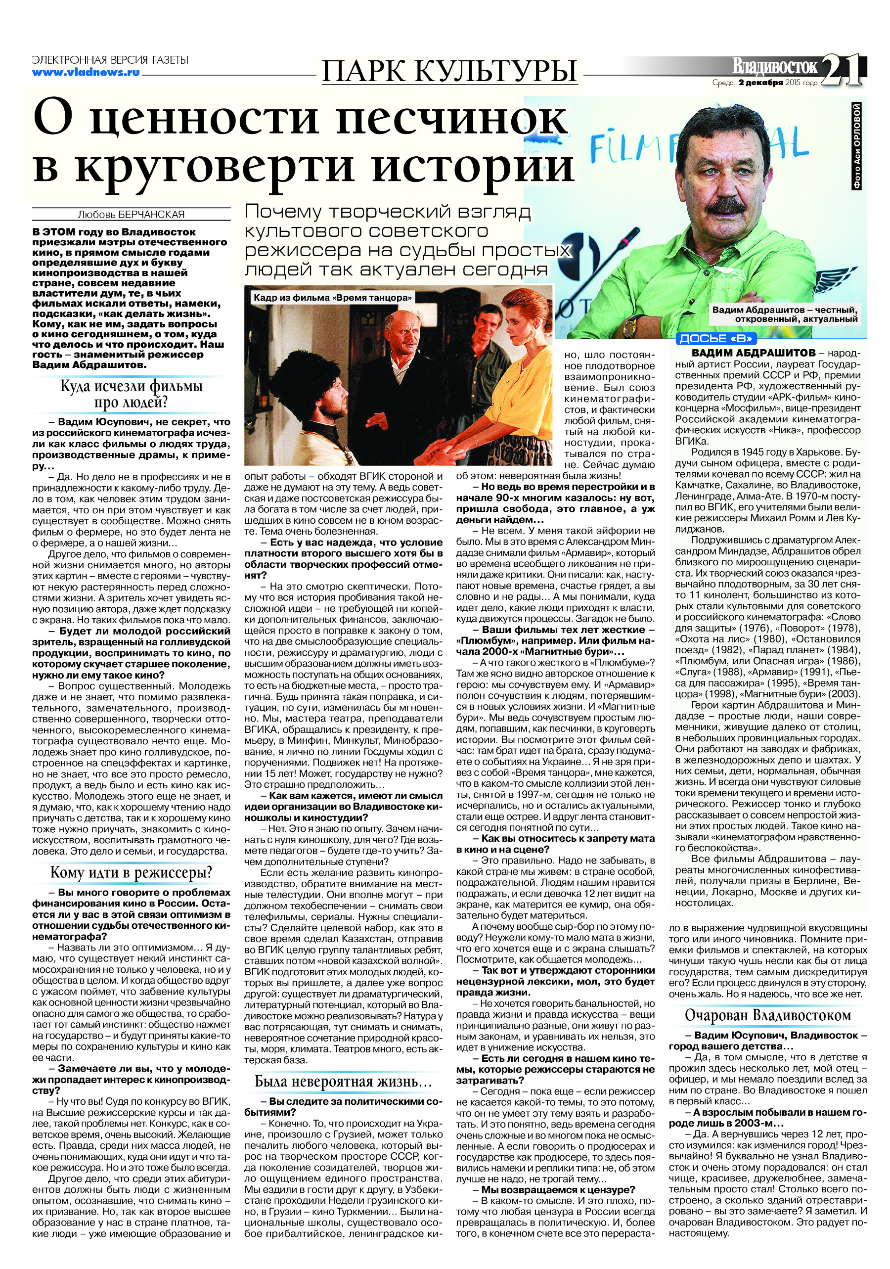 Электронная версия газеты "Владивосток" №3848 (182) от 02.12.2015