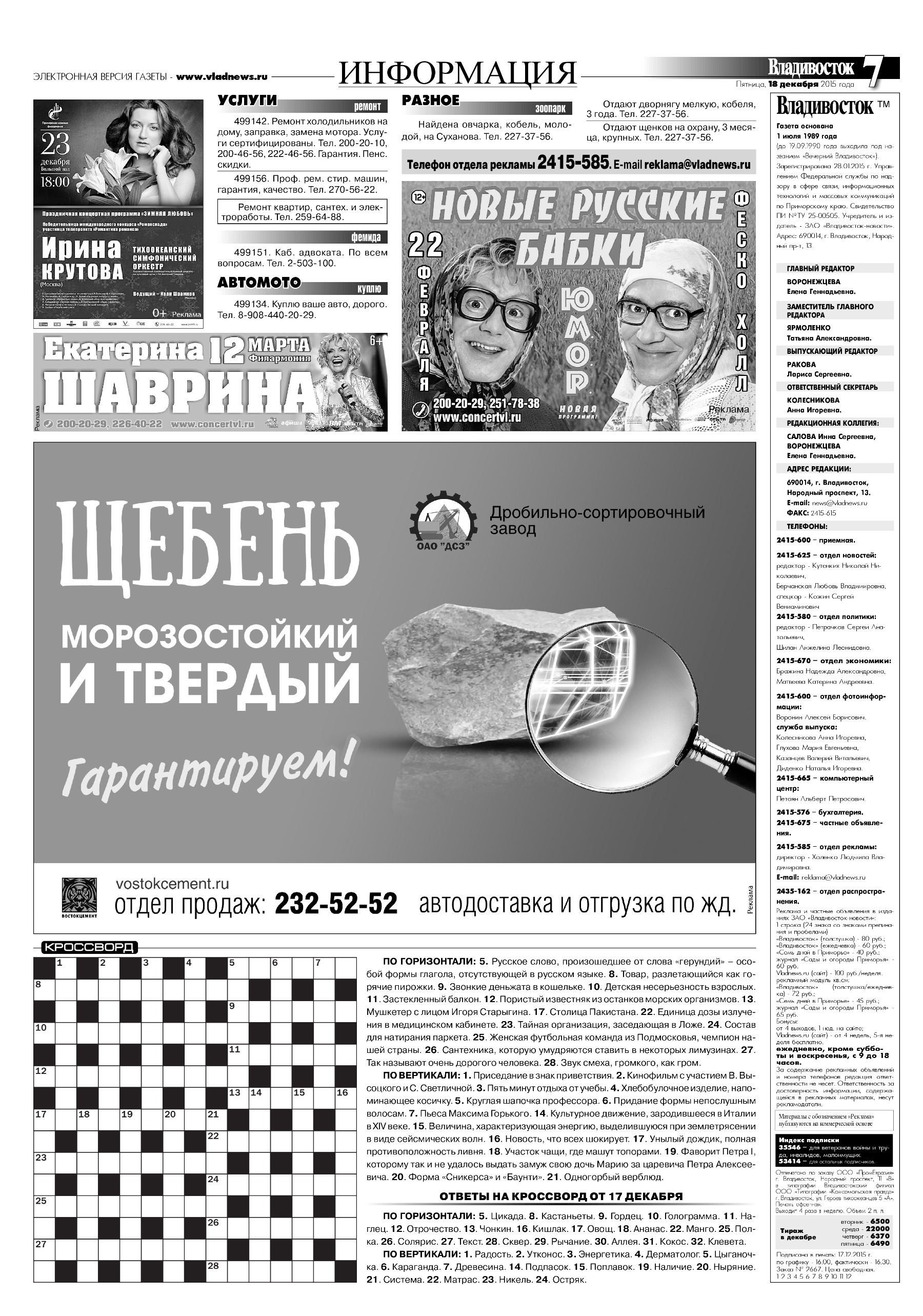 Электронная версия газеты "Владивосток" №3858 (192) от 18.12.2015