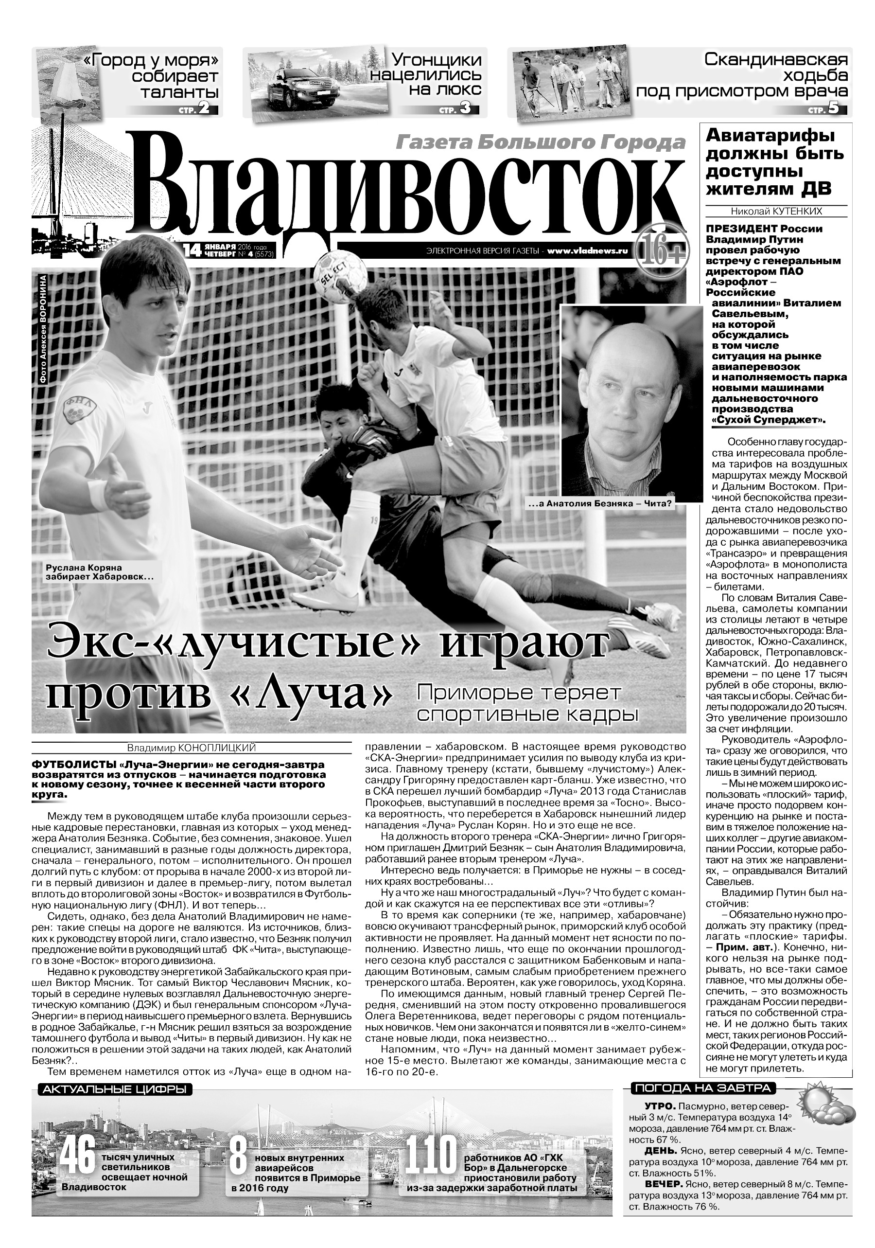 Электронная версия газеты "Владивосток" №3868 (4) от 14.01.2016
